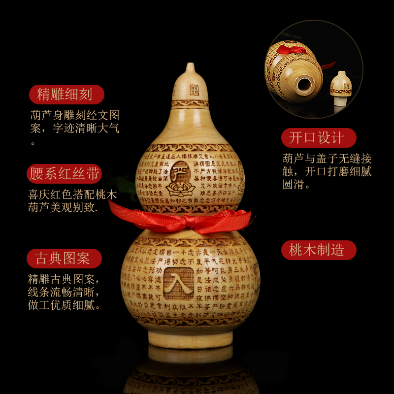 天然桃木葫芦中式客厅玄关书房儿童房卧室阳台公司前台办公室摆件