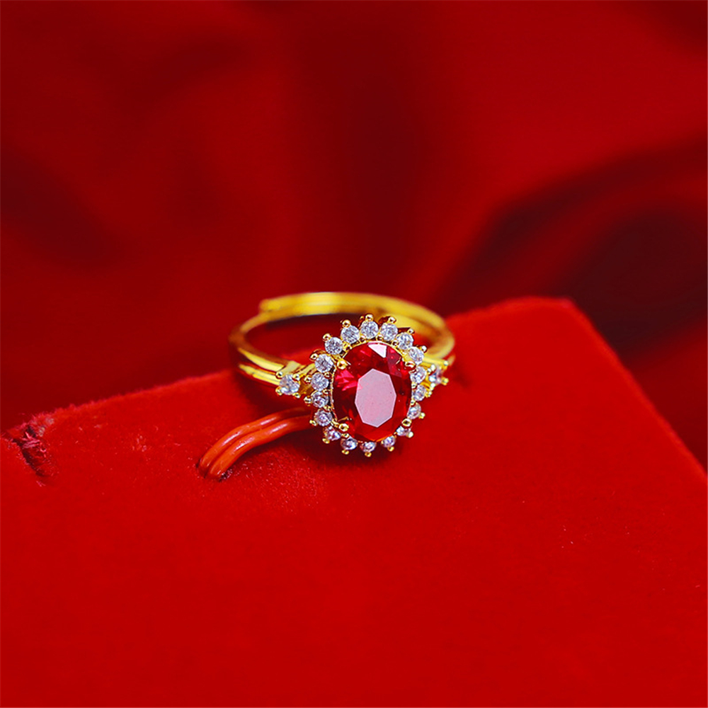 戒指女沙金红色锆石水晶指环精致高级感婚戒新娘婚礼首饰品礼物