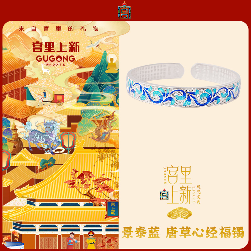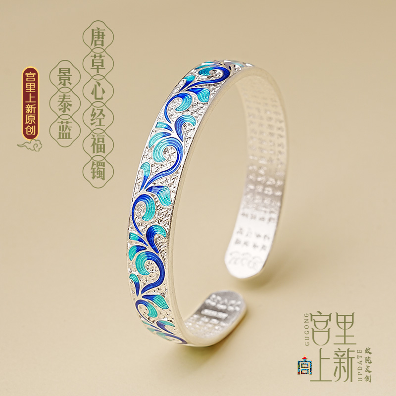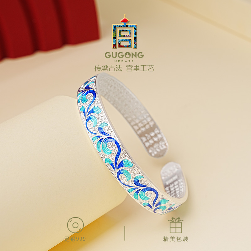 宫里上新银手镯女款纯银9999足银国风银镯子景泰蓝珐琅生日送妈妈
