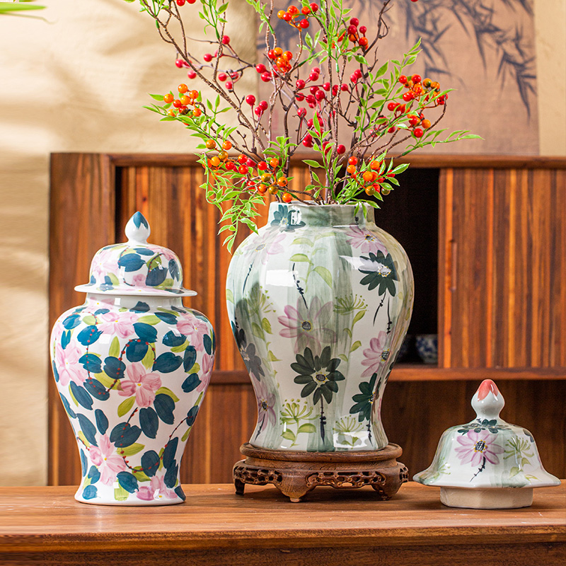 景德镇高温彩色将军罐新中式陶瓷将军罐可水培轻奢高档陶瓷花瓶