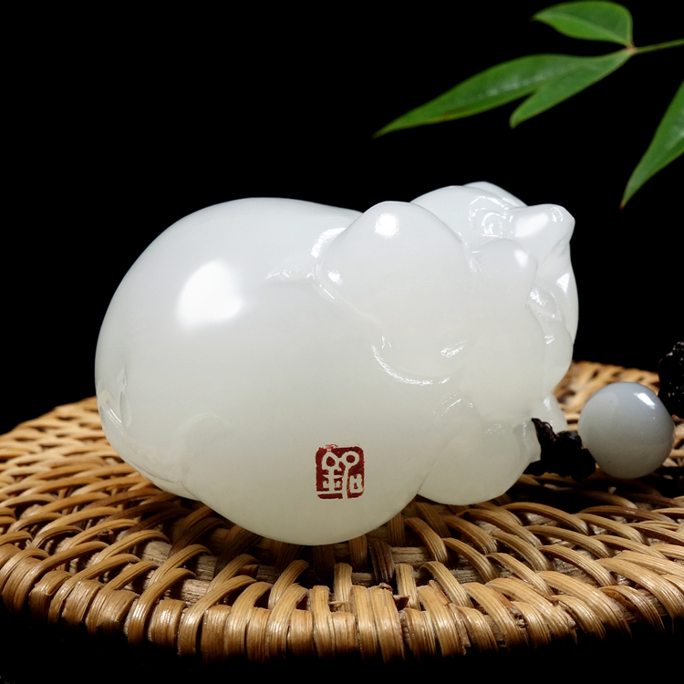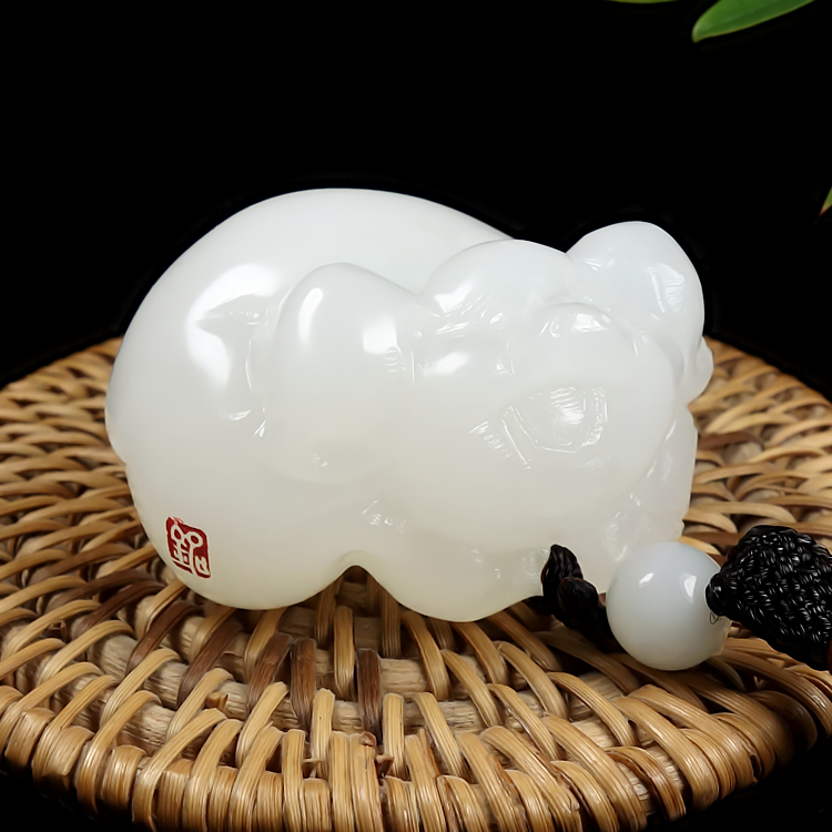 天然玉石新疆和田玉白玉籽料生肖猪把件挂件羊脂玉招财玉猪手把件