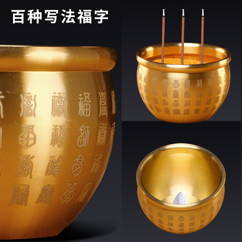 纯铜米缸百福缸摆件 大号铜盆聚宝盆创意聚财黄铜小摆件客厅摆设