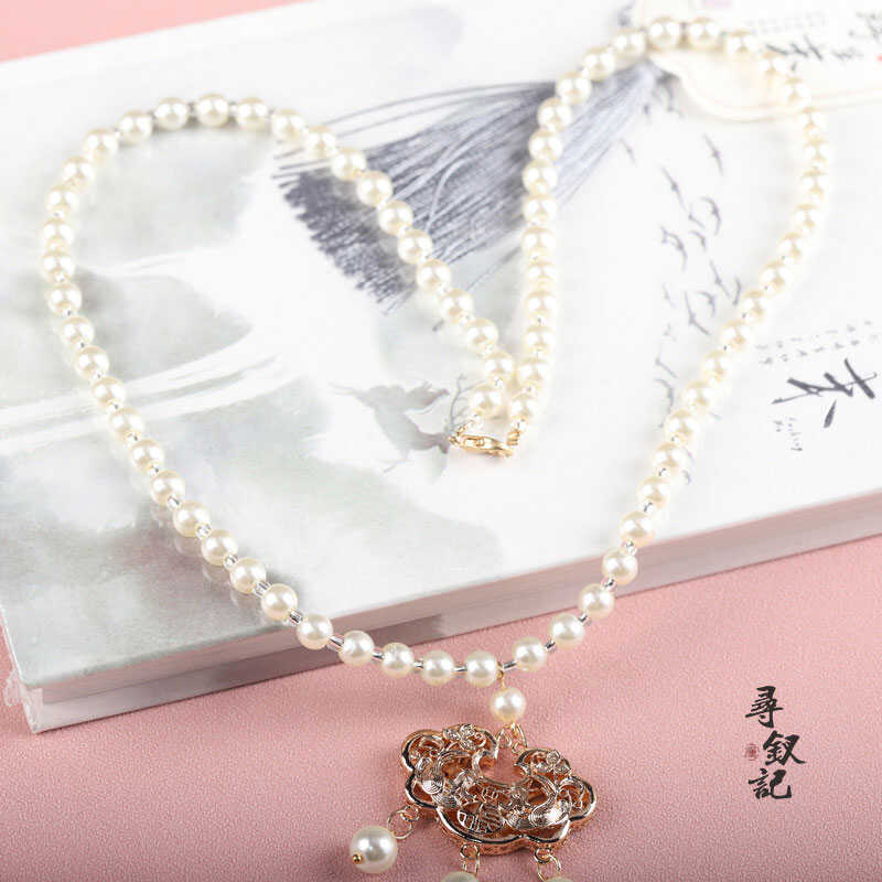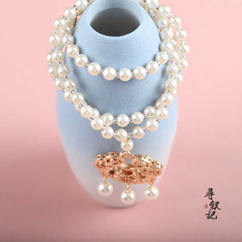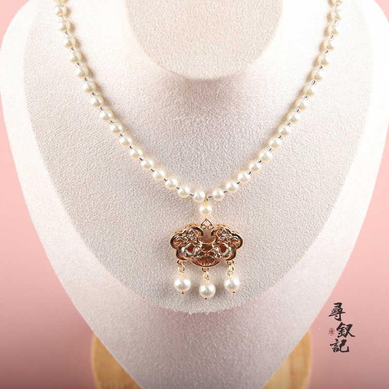 汉服项链女古风双层璎珞复古平安锁珍珠软璎珞唐风诃子裙汉服配饰