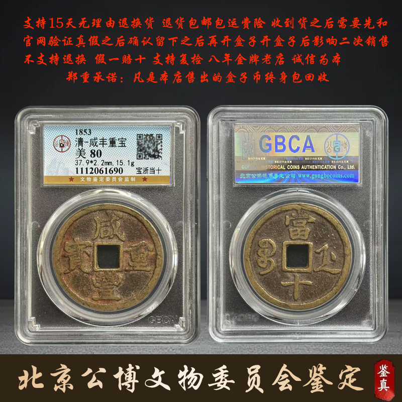 清代公博评级美品保真包老铜钱咸丰重宝苏当十古钱币古玩收藏古董