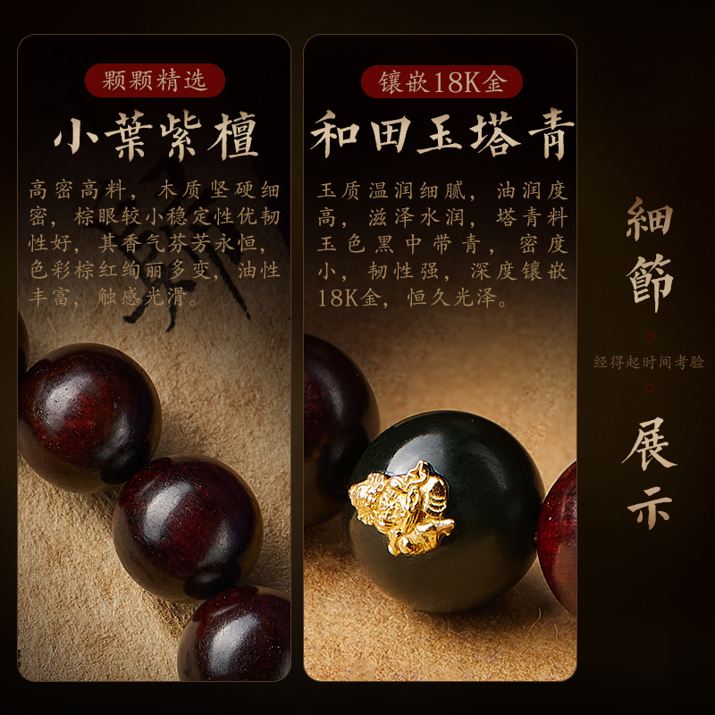 极速小叶紫檀手串男女塔青和田玉绿D度母扎基拉姆大黑天文玩佛珠