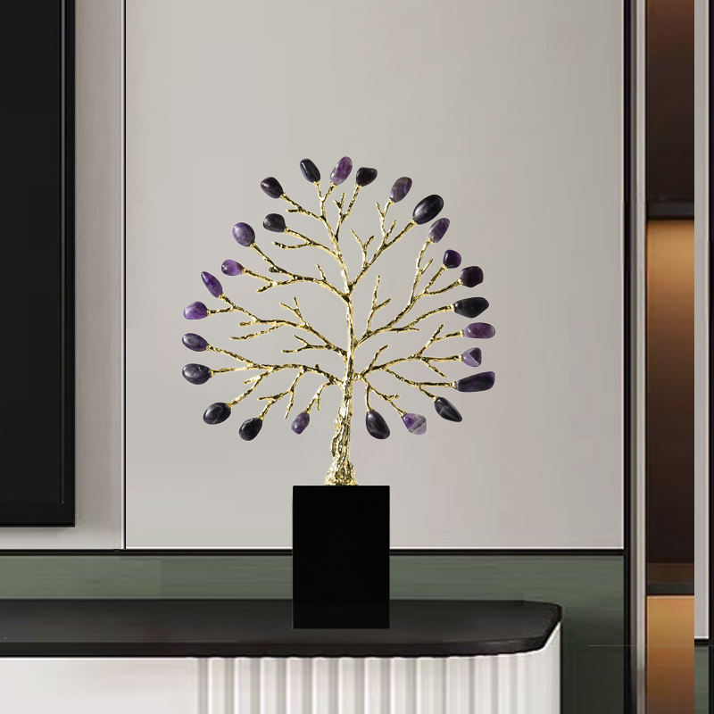 玛瑙发财树摆件轻奢高档客厅玄关酒柜电视柜旁办公室乔迁开业礼品