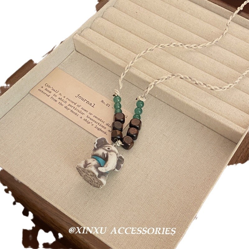 小红书同款可爱童趣创意小象串珠项链新款设计小众手工编织锁骨