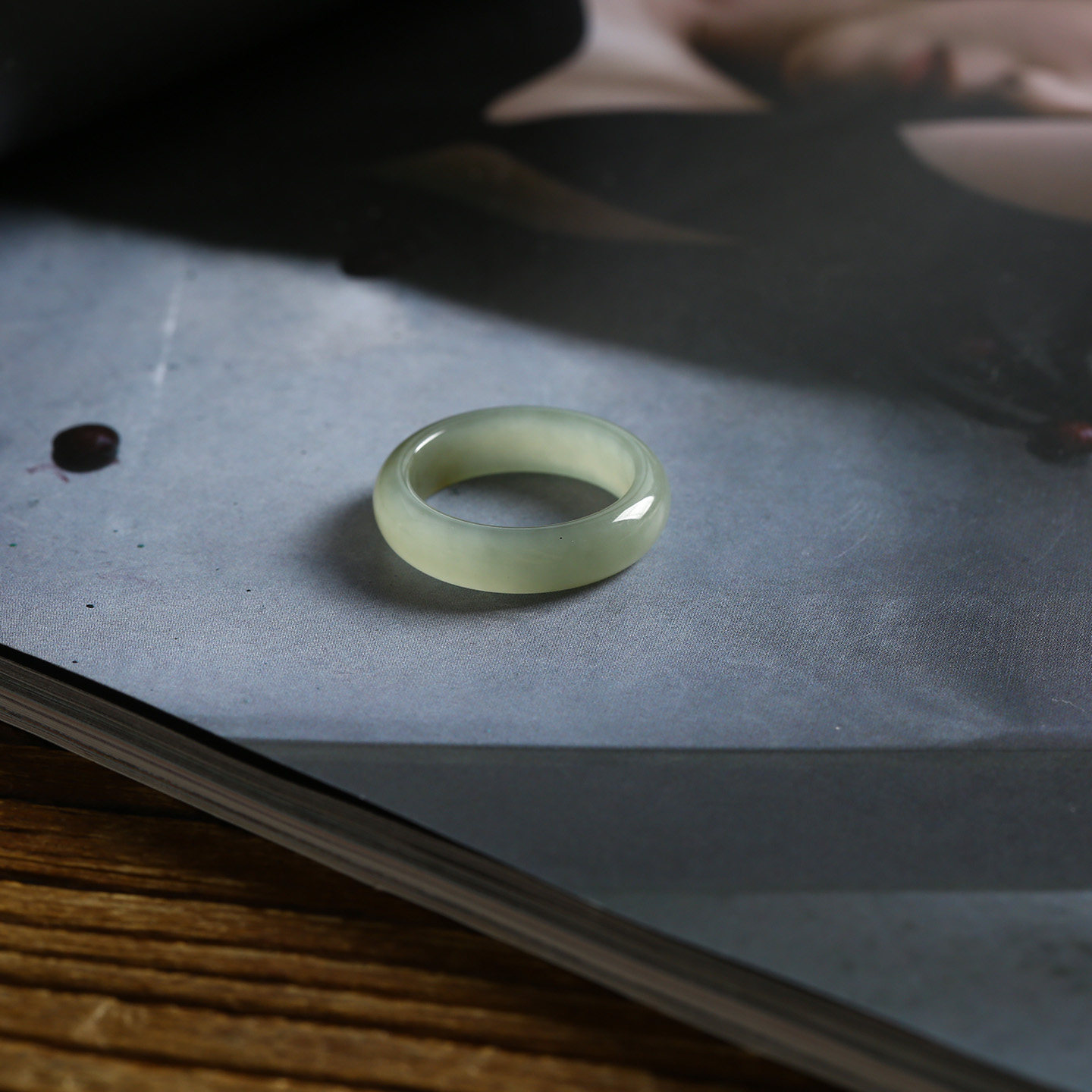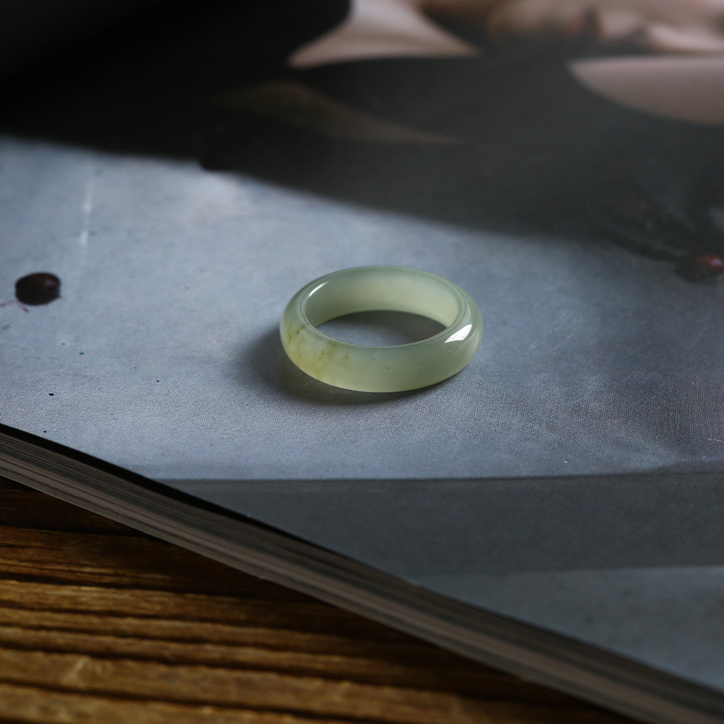 16号戒指 新疆和田玉糖料糖青玉圆弧素圈指环 2867