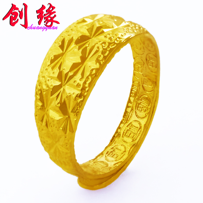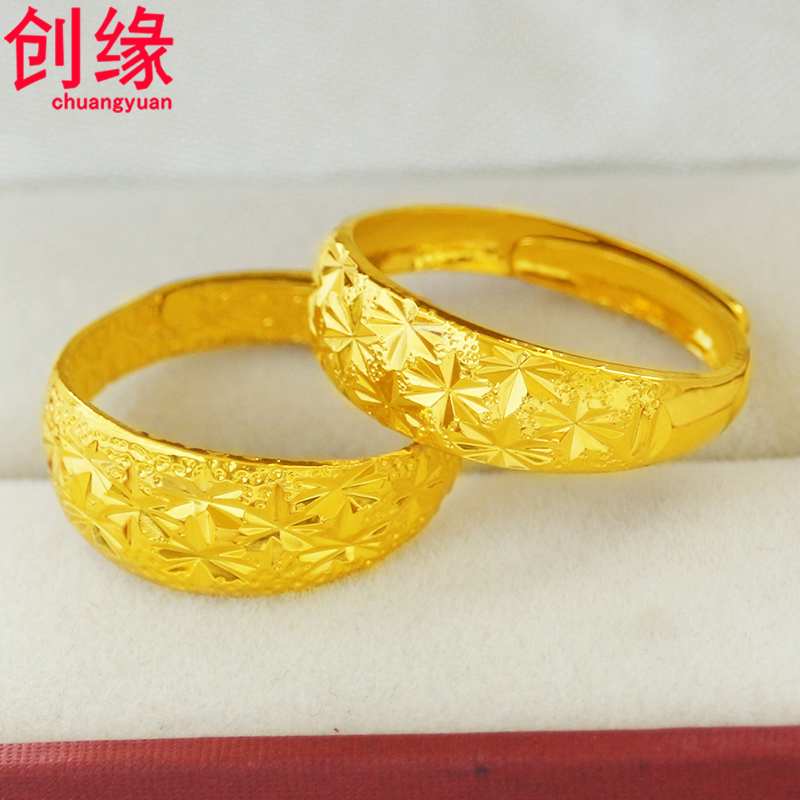 创缘镀黄金戒指女可调节满天细星七夕情人节礼物镀沙金指环男戒指