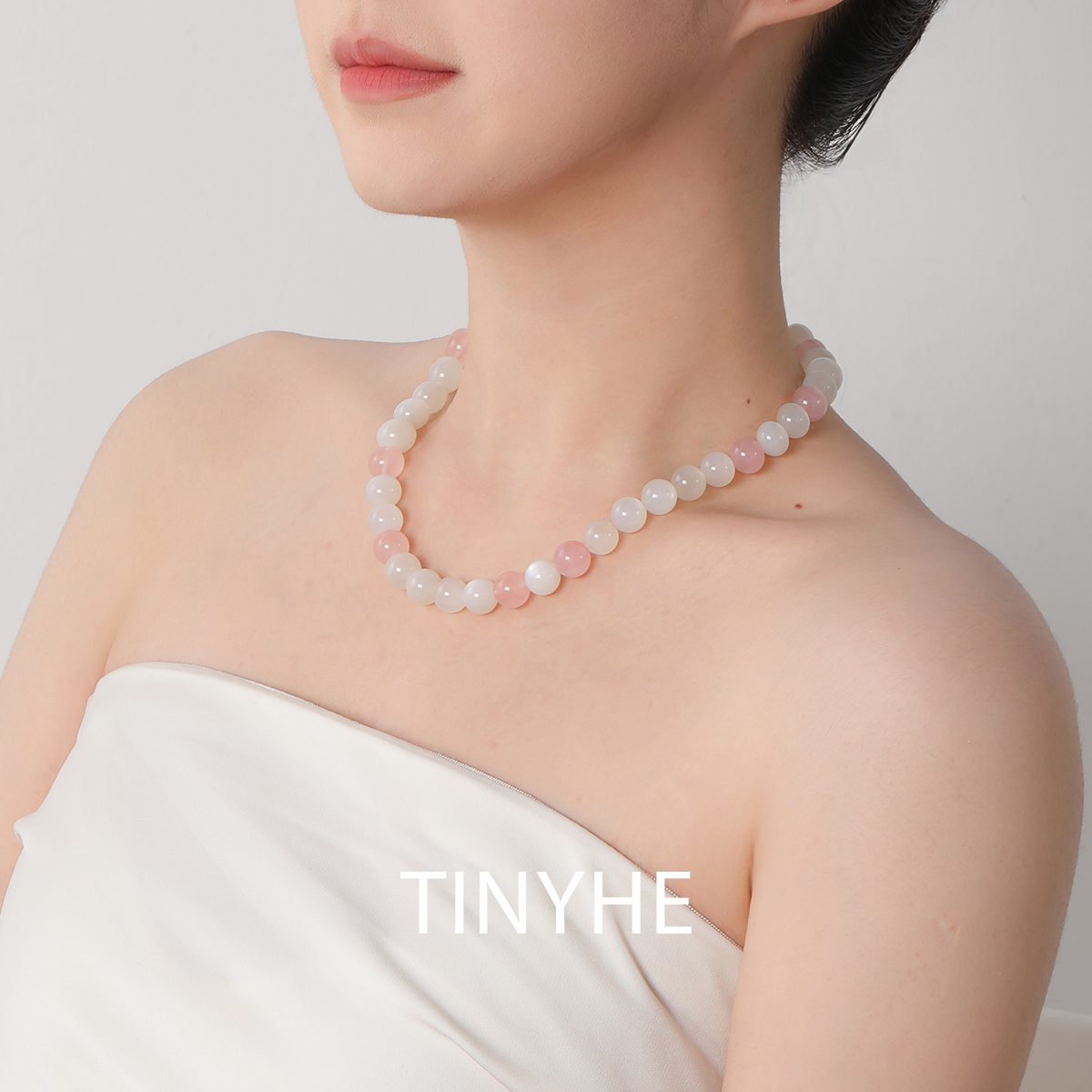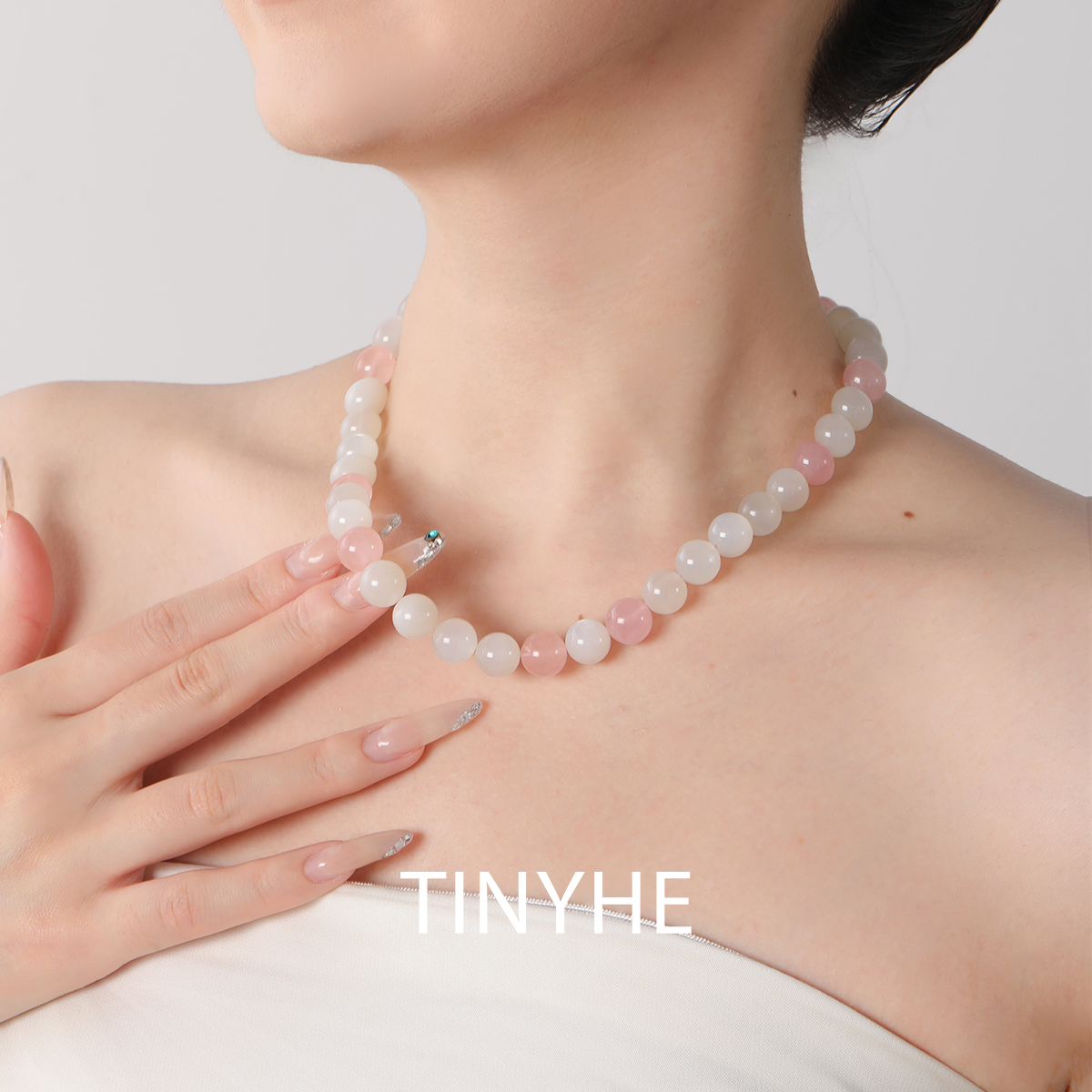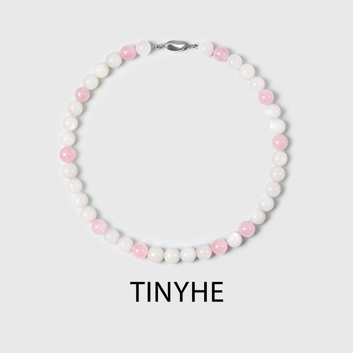 TINYHE米雪 天然樱花粉水晶白月光项链女925纯银串珠轻奢小众原创