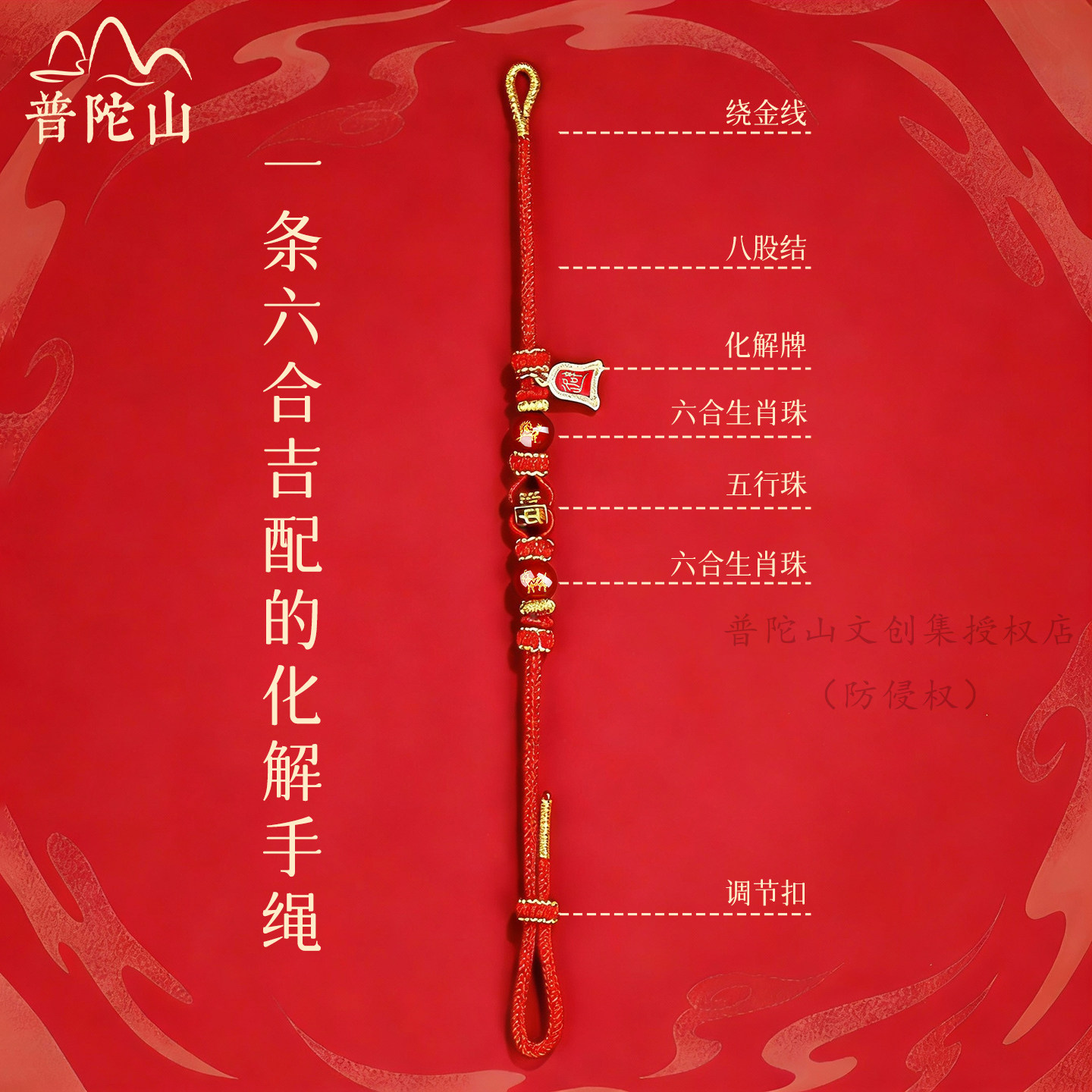 普陀山2026本命年红绳手链属马鼠牛兔红色编织绳太岁护身马年手绳