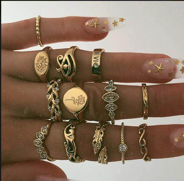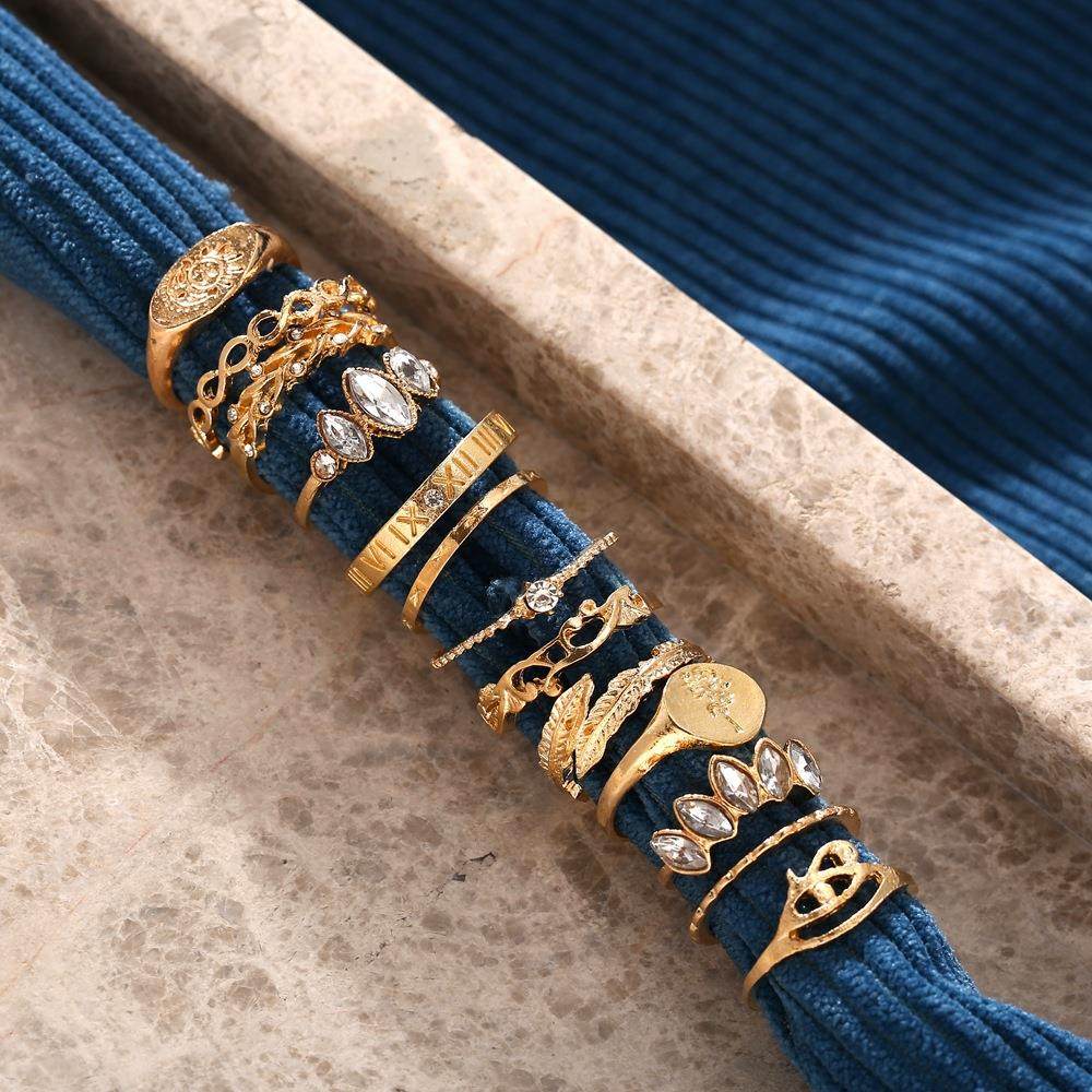 13 piece set rings women Vintage diamond leaf ring set戒指女