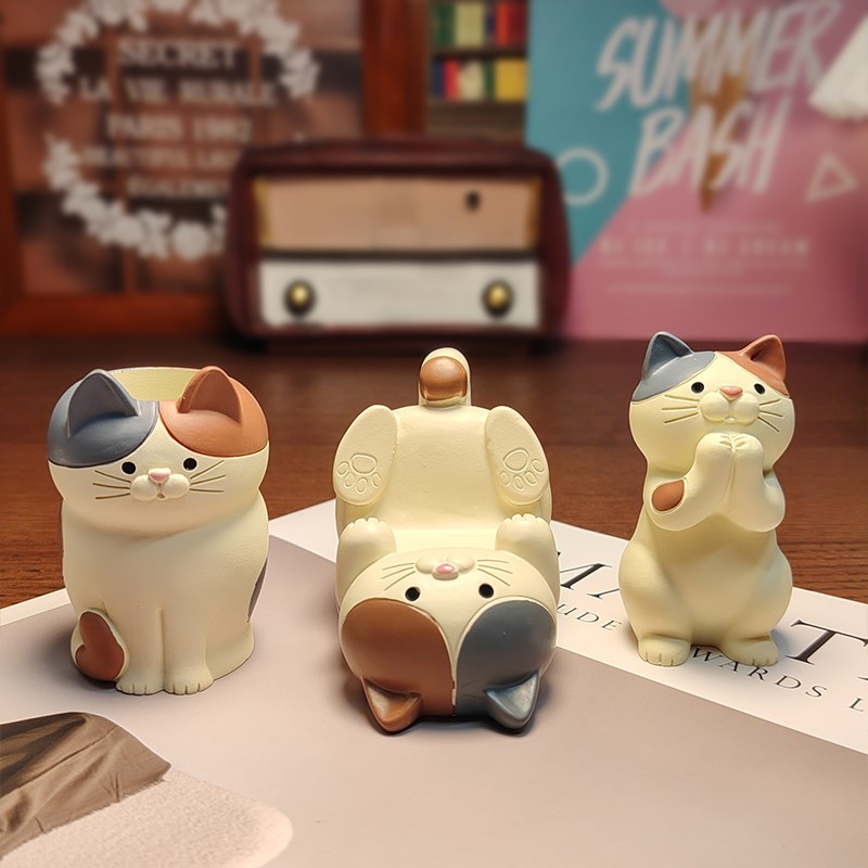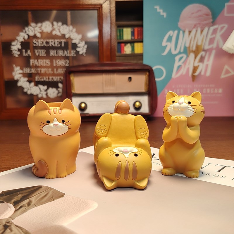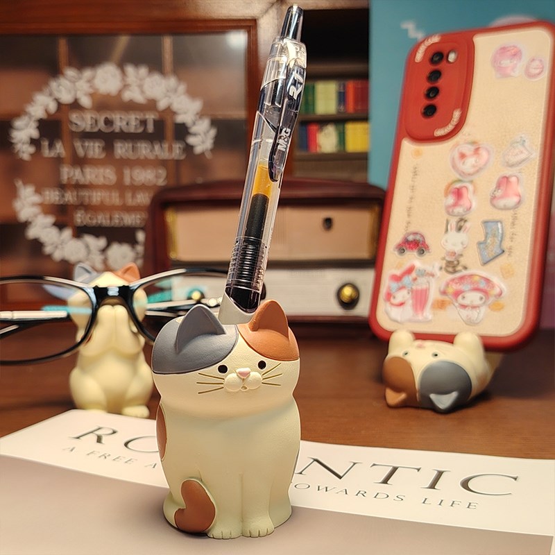 疗愈猫咪桌面摆件 手机支架笔筒眼镜架 可爱学习桌面氛围布置装饰