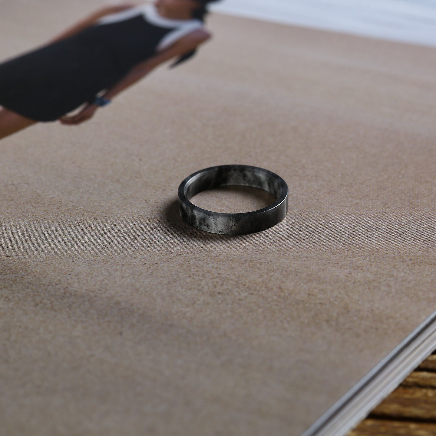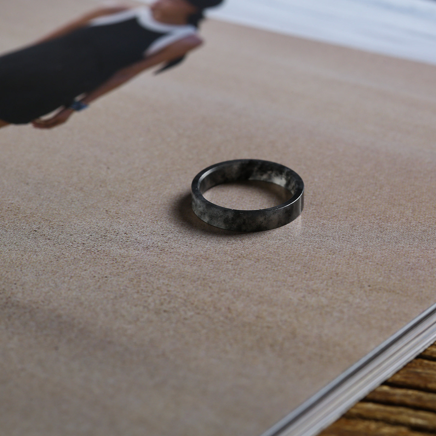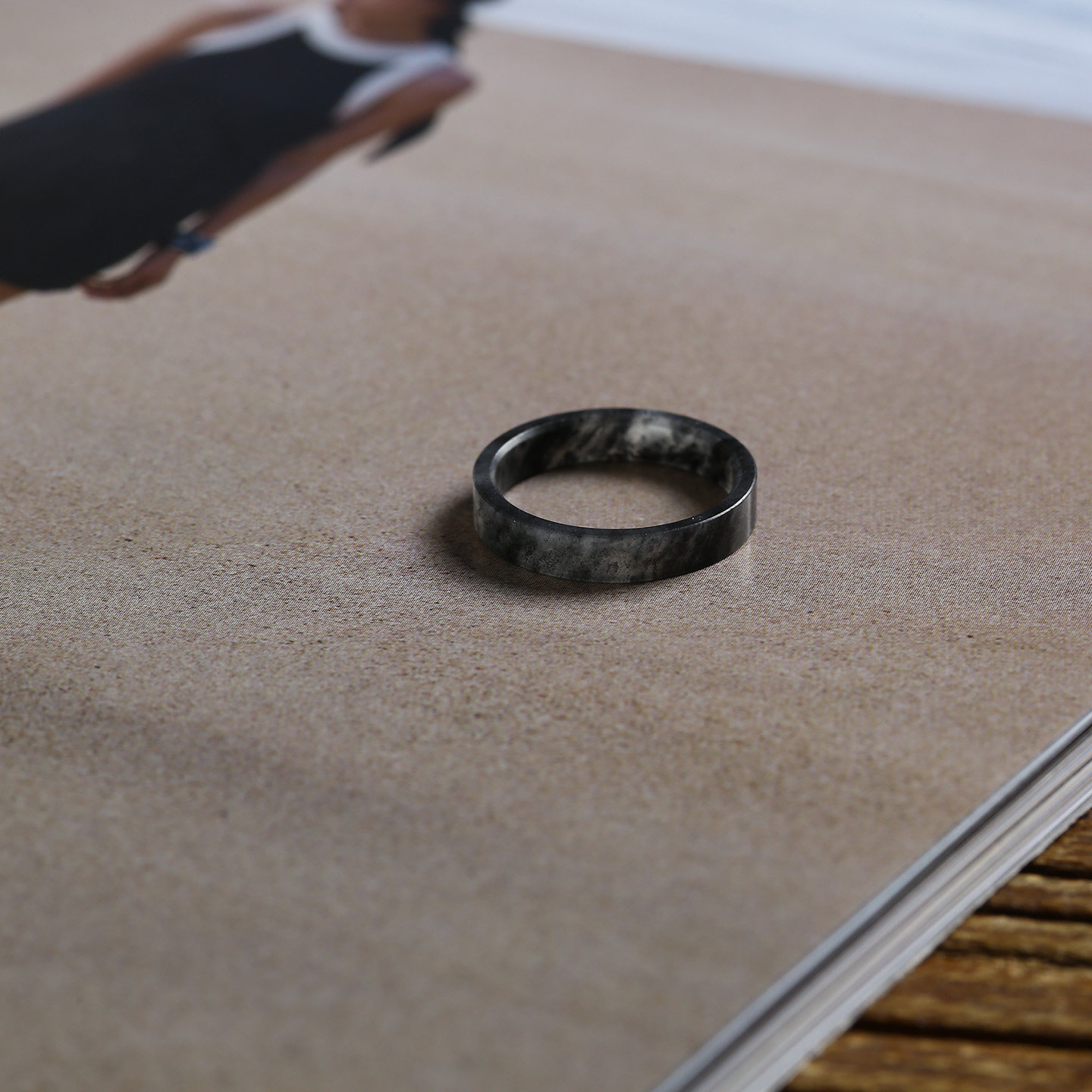 10号戒指 新疆和田玉青花籽料 籽玉墨玉薄款窄条直切款指环 9105