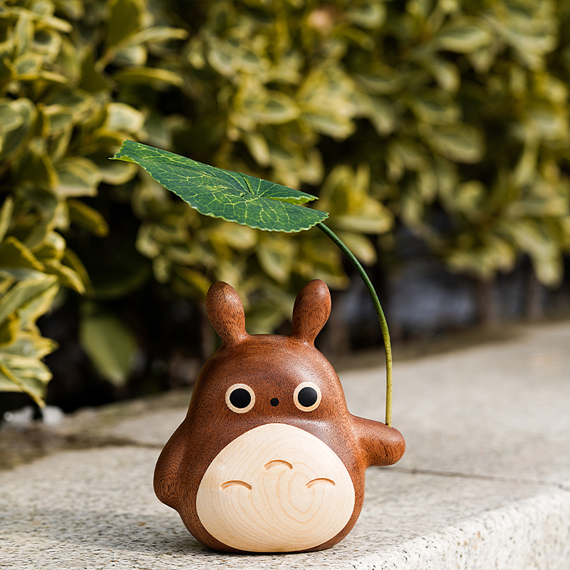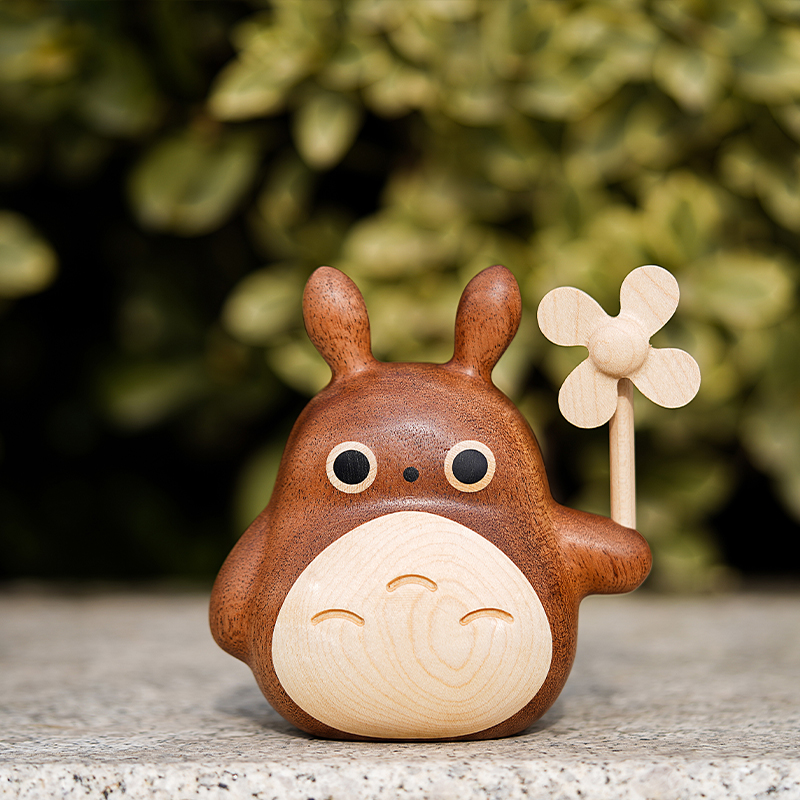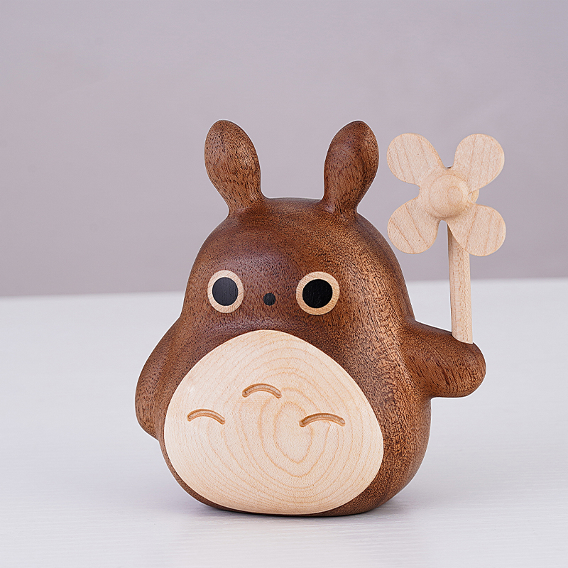 龙猫原木摆件实木质旋转小风车汽车香薰车载饰品桌面公仔可爱礼物