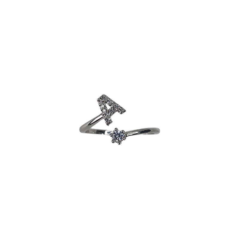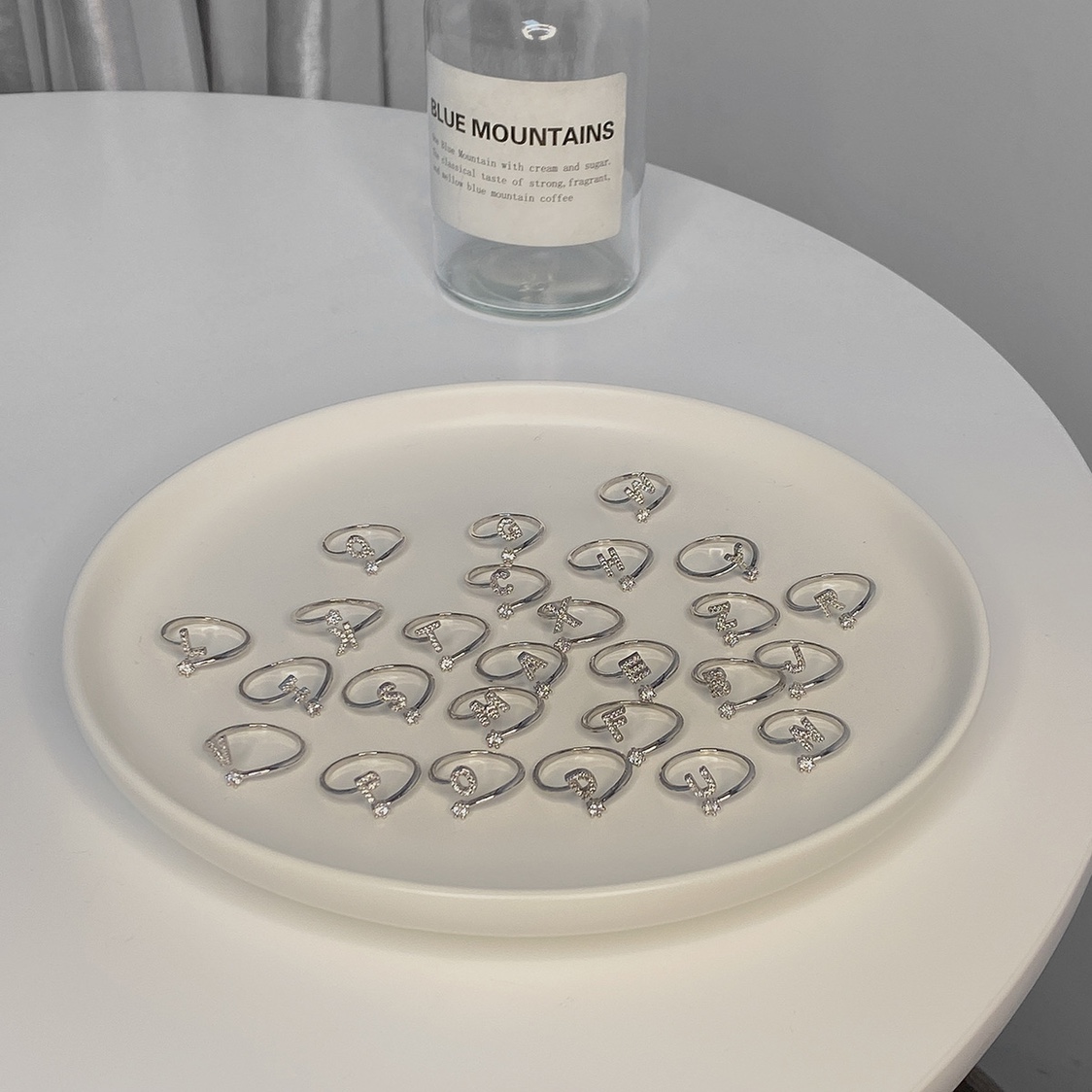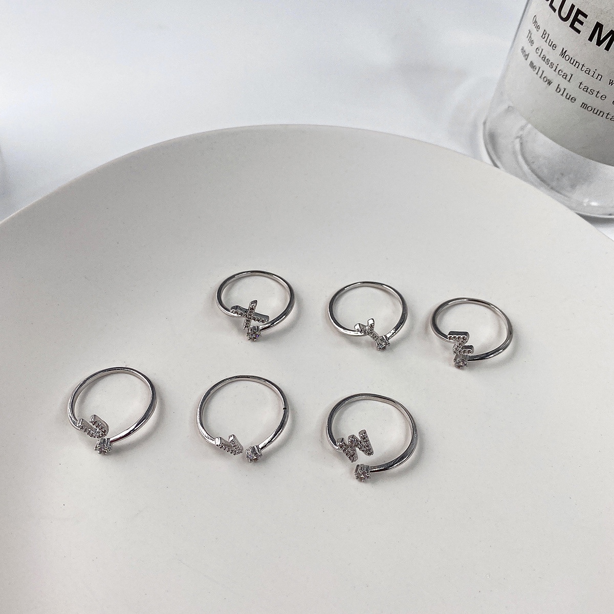 韩国26个字母个性小众情侣戒指男女简约英文字母镶钻开口可调A17