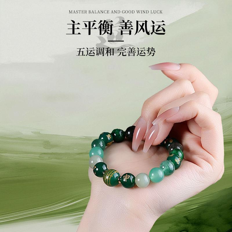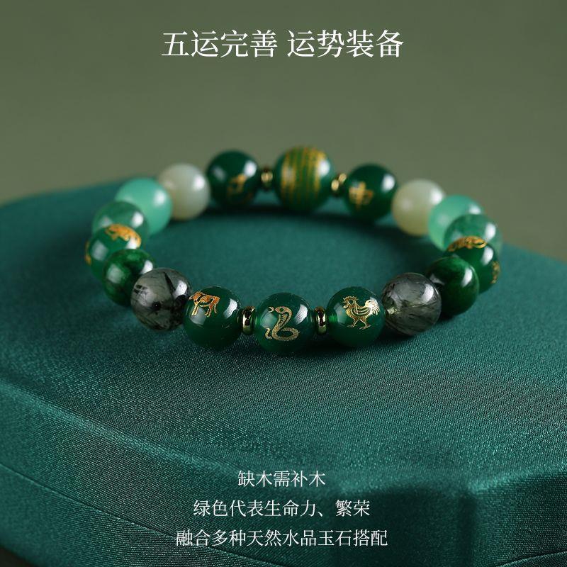 普陀山五行手串喜补木女正品天然干青翡翠和田玉东陵水晶三合手链