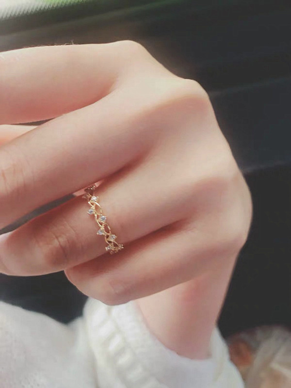 特 花枝蔓藤 日系轻奢 超美花环精美925纯银镀金戒指女尾戒女仙气