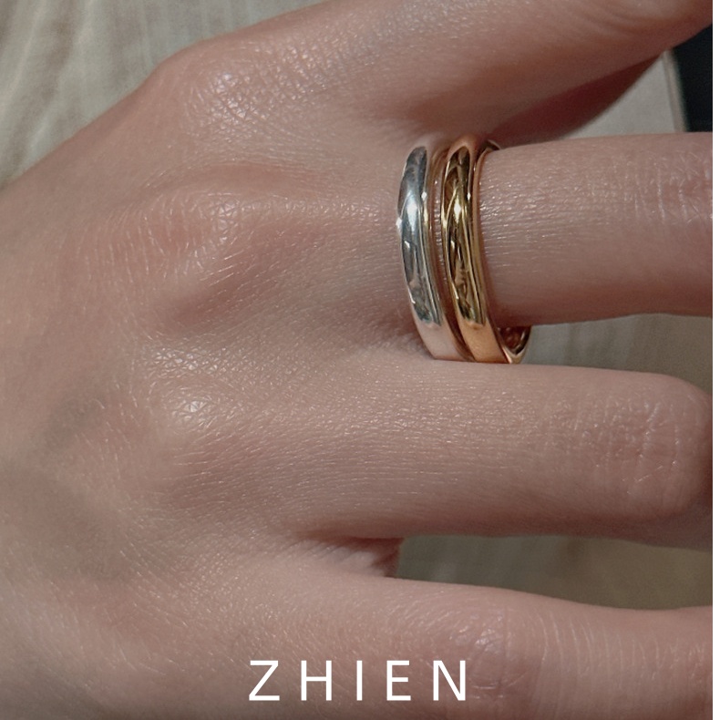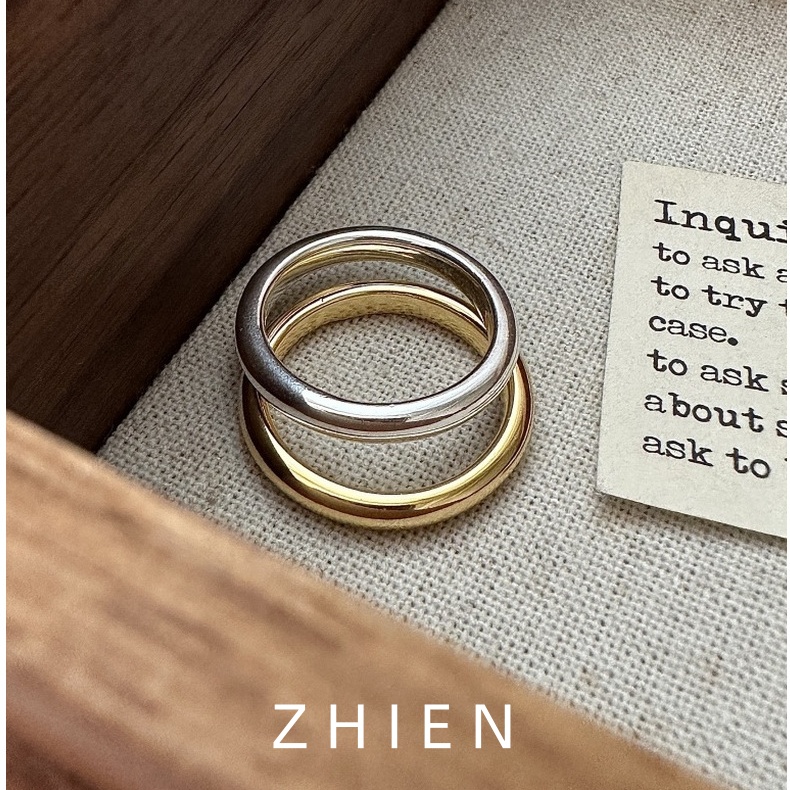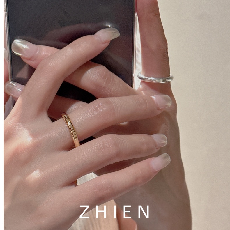 至恩S925纯银戒指女ins风闭口指环简约金色时髦冷淡风泥鳅背素圈