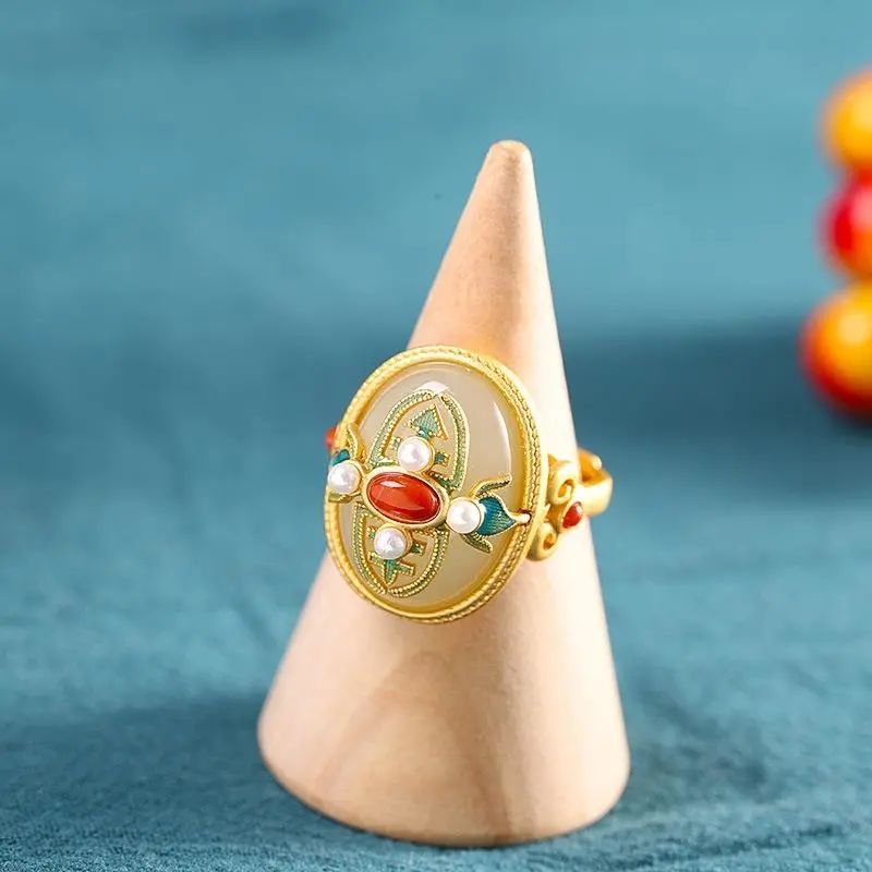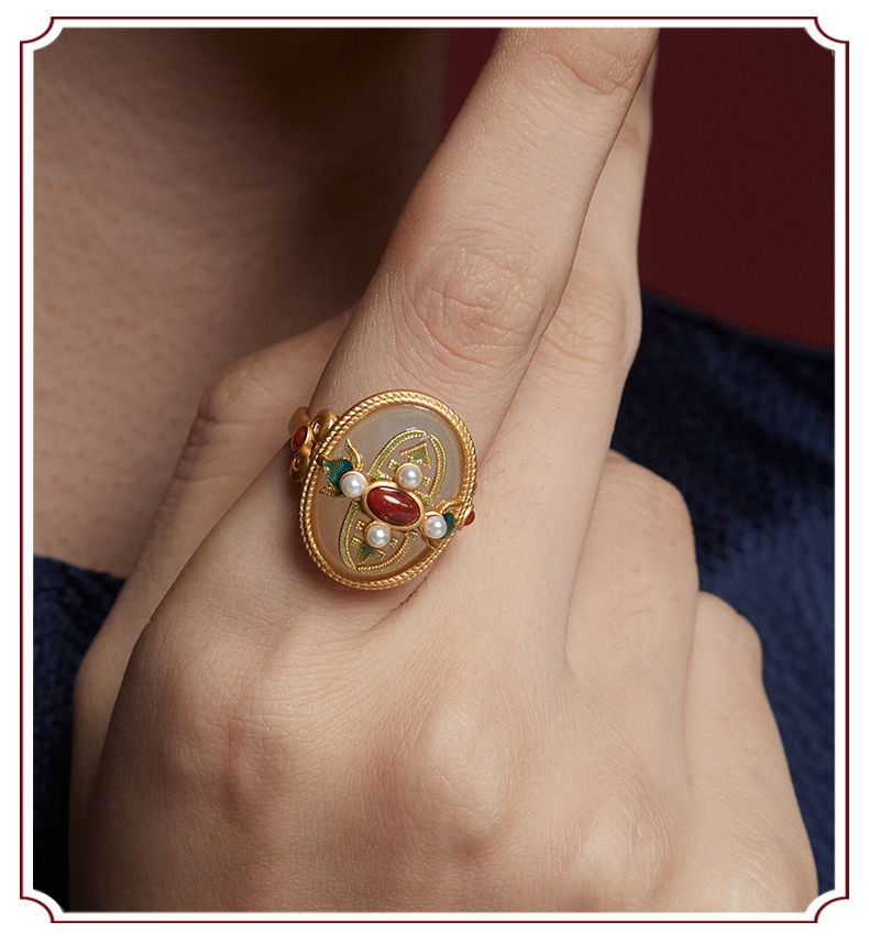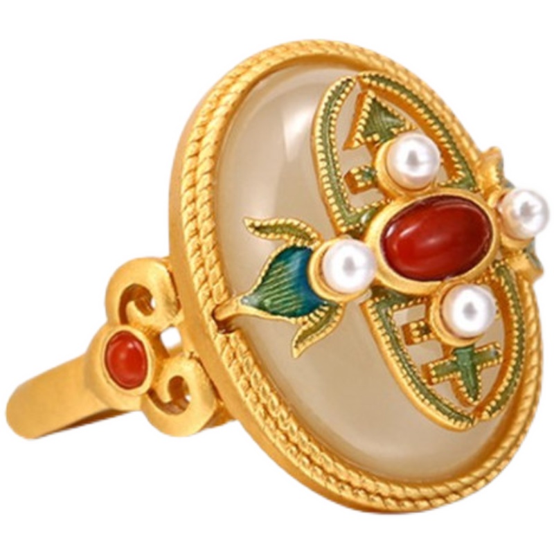 复古开口戒指传承鎏金工艺彩绘珐琅仿玉镀金手饰贵气复古典雅指环