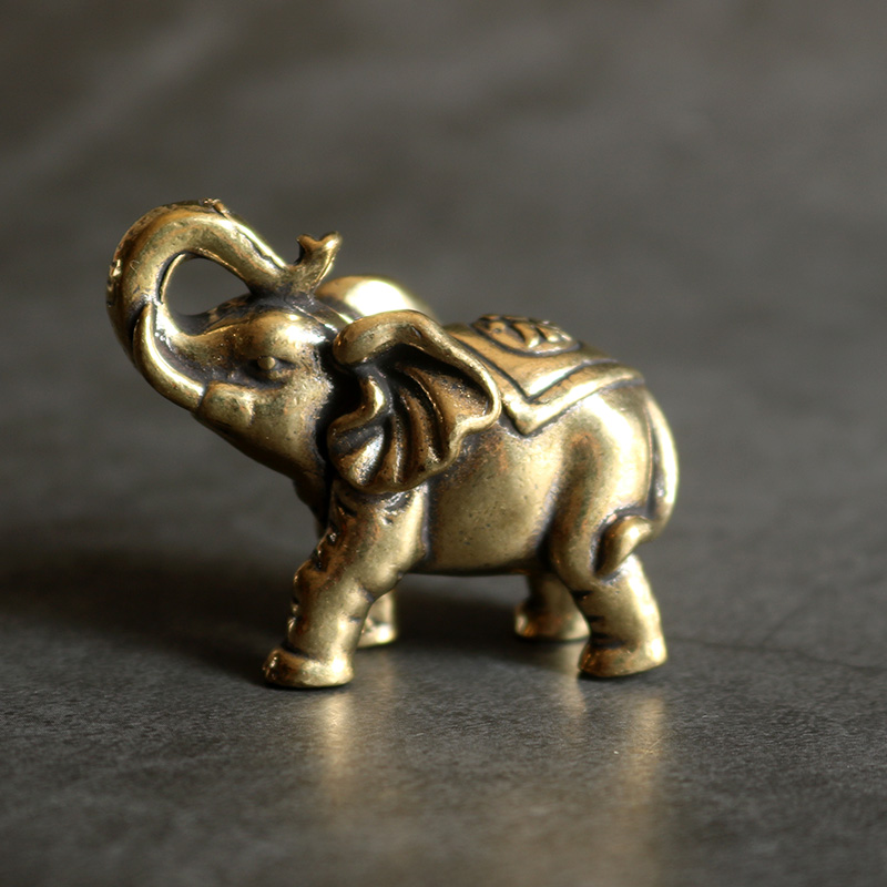 复古实心纯黄铜办公桌面车载小摆件福财大象随身工艺品手把玩件
