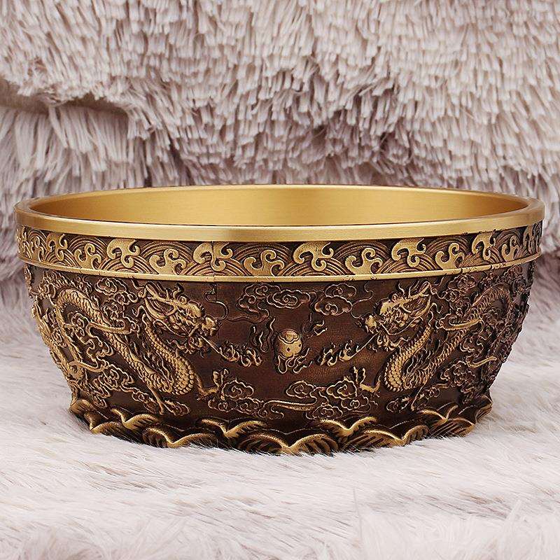聚宝盆聚财摆件厅前台D-07029饰物创装意浮客雕复古双龙大铜盆碗