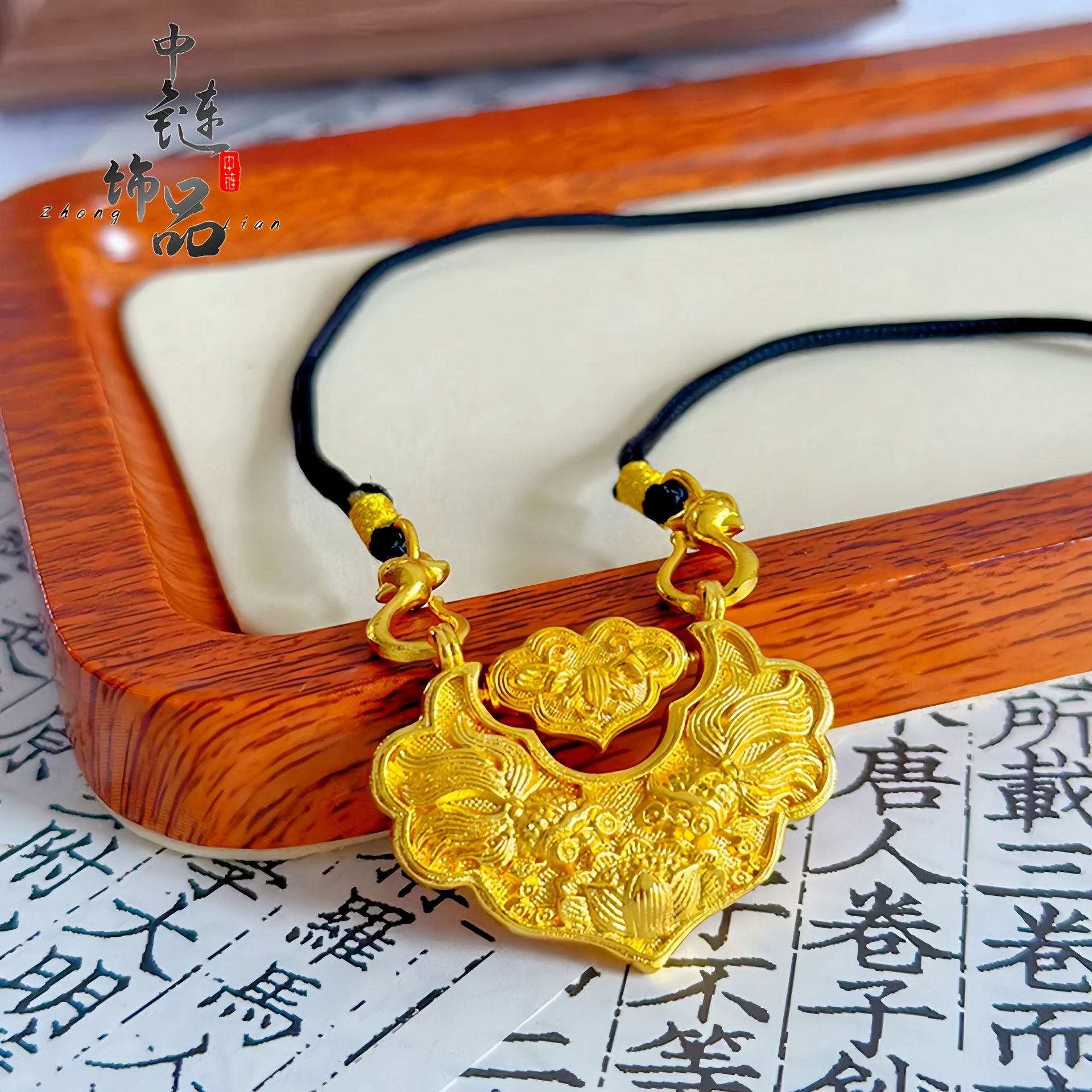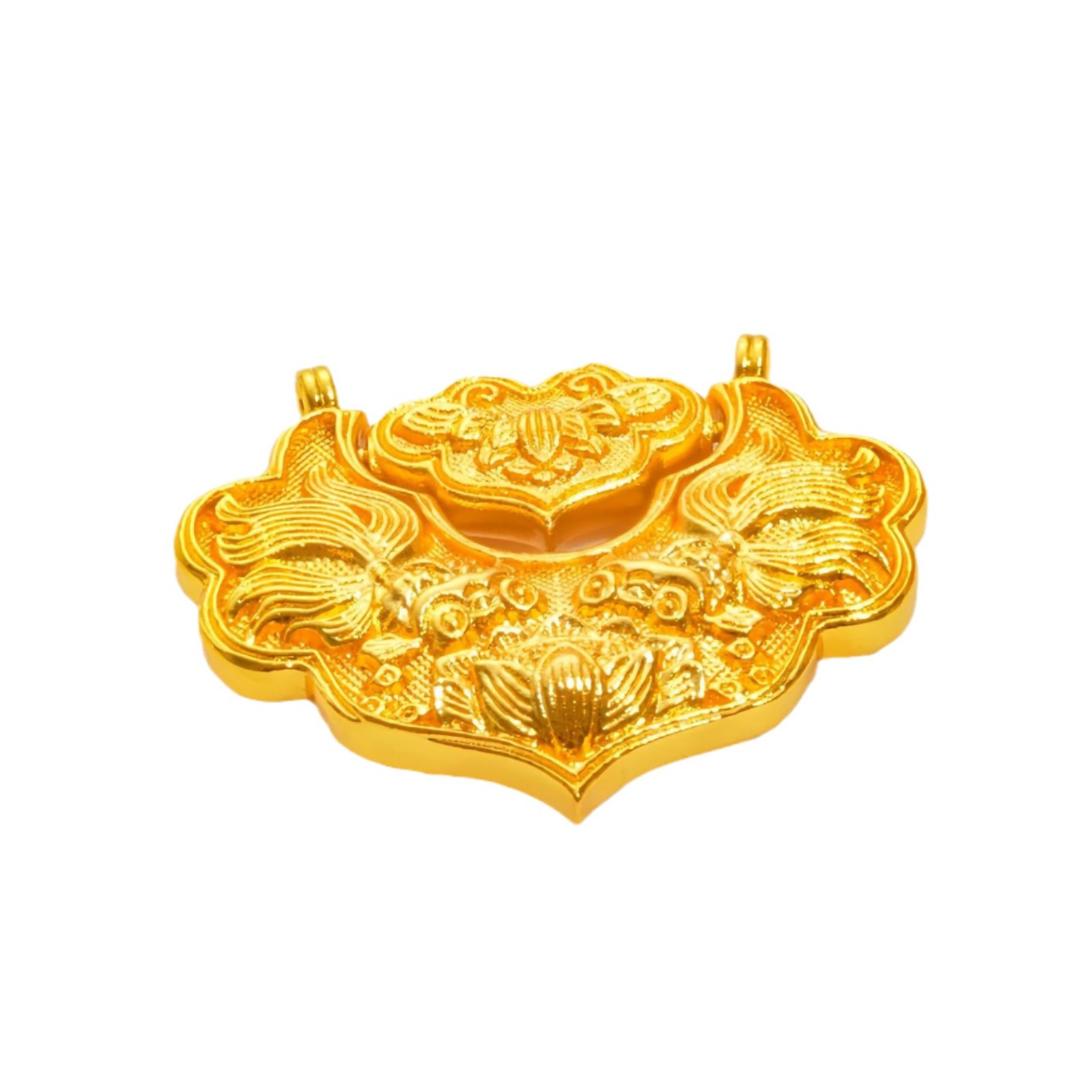 金店同款高保色古法沙金可转动锦鲤荷花锁包吊坠女双鱼锦鲤如意锁