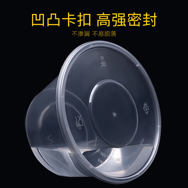 当前位置:首页>商品详情>康百晟圆形1750ml一次性餐盒加厚塑料透明外卖打包盒快餐饭盒圆碗