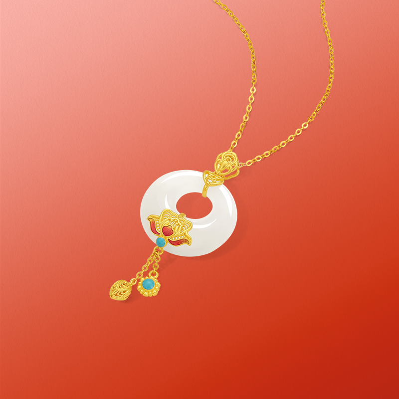 周六福和田玉金镶玉吊坠如玉莲蓬平安扣女款玉坠节日礼物