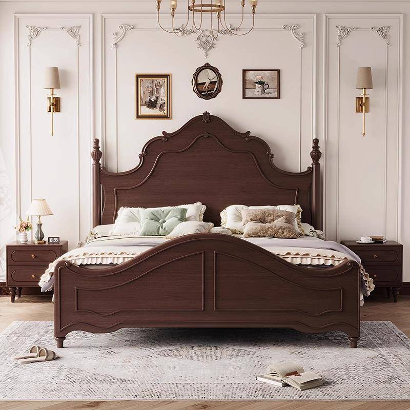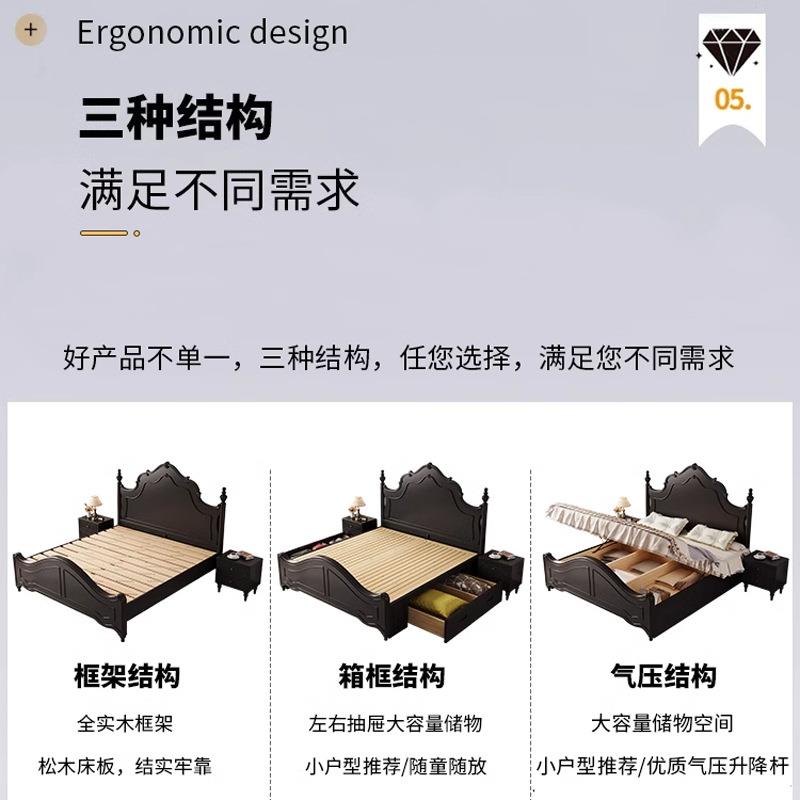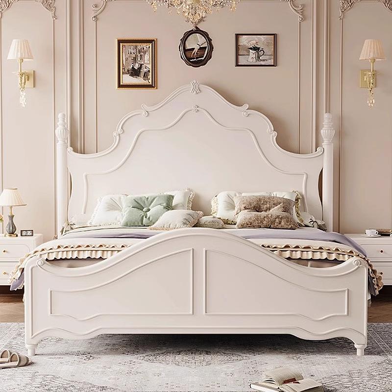 美式实木床中古风1.8米1.5米双人大床白色法式床现代简约轻奢婚床