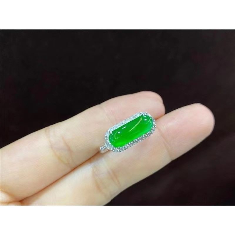 冰种阳绿玉髓戒指女S925银镶嵌细钻指环水润起光精美时尚气质优雅