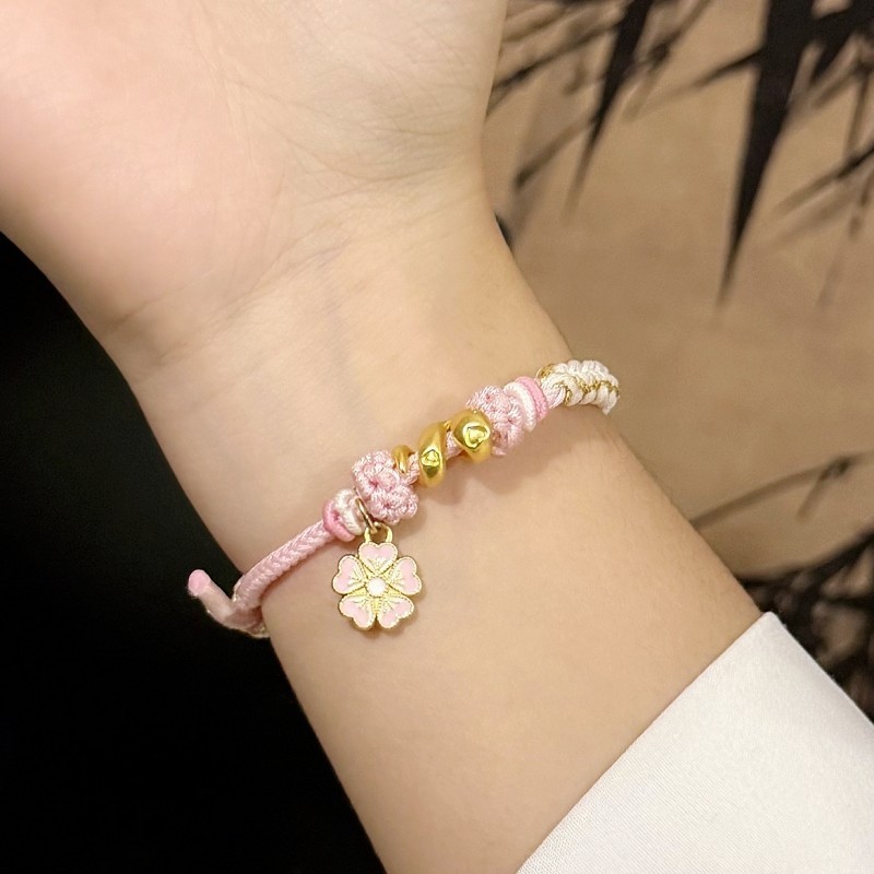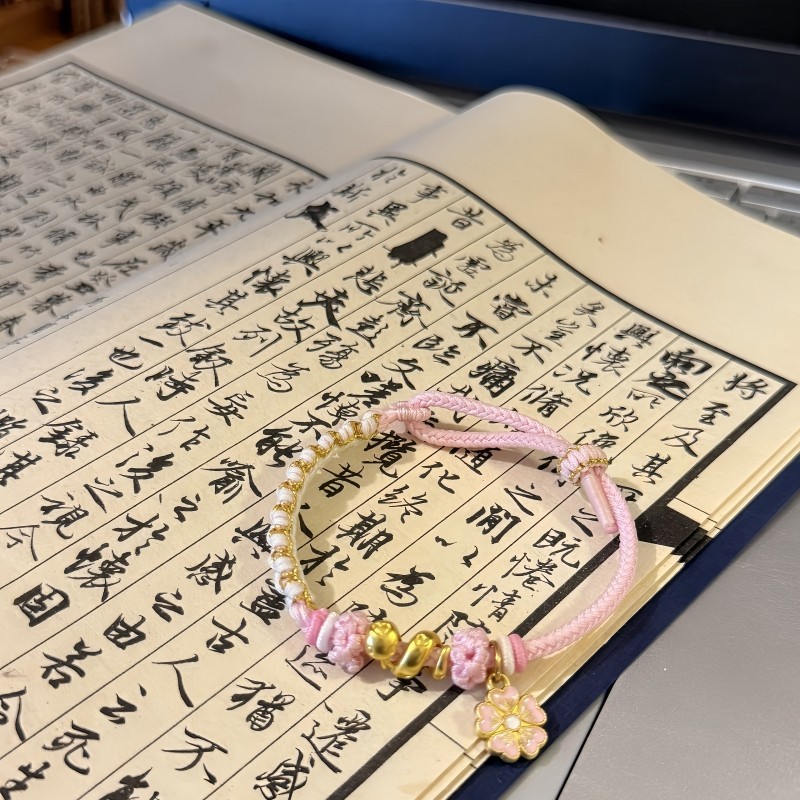 女神节礼物桃之夭夭桃花卷卷蛇编织手绳手工diy材料包甜美女生
