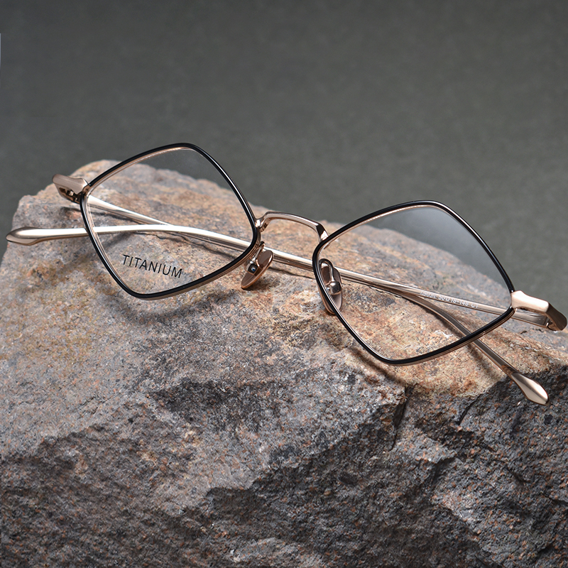 复古菱形眼镜框女款个性纯钛小脸文艺可配近视度数素颜全框防蓝光