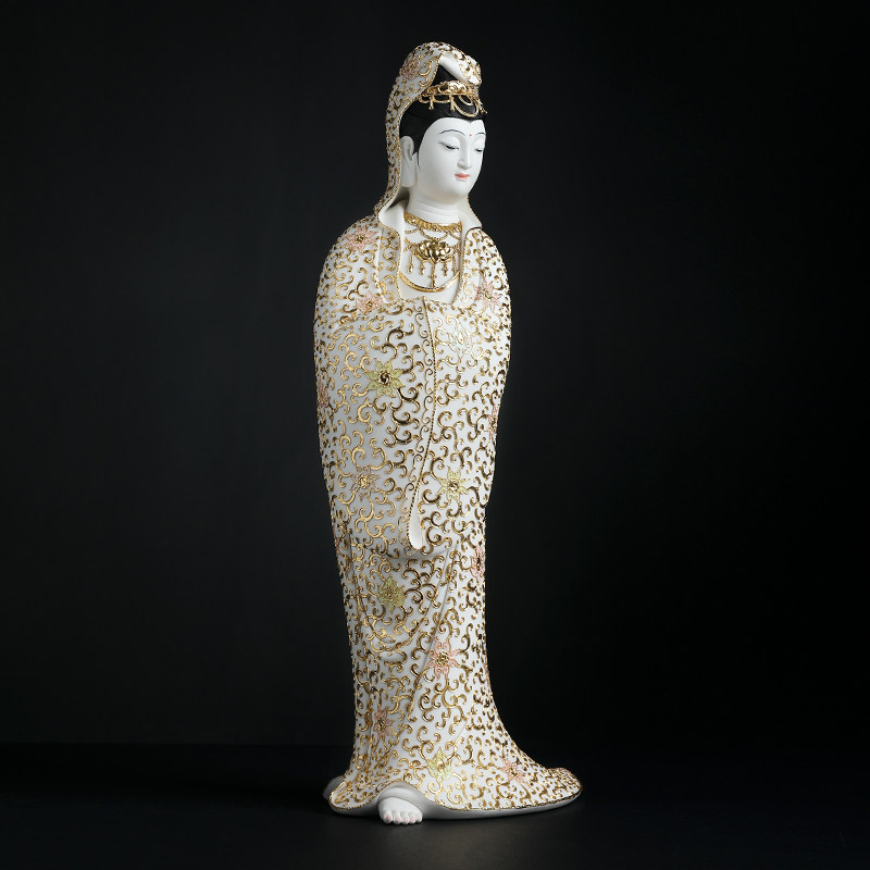 戴玉堂陶瓷摆件《禅韵观音漆线雕》林建平装饰艺术佛像家居饰品