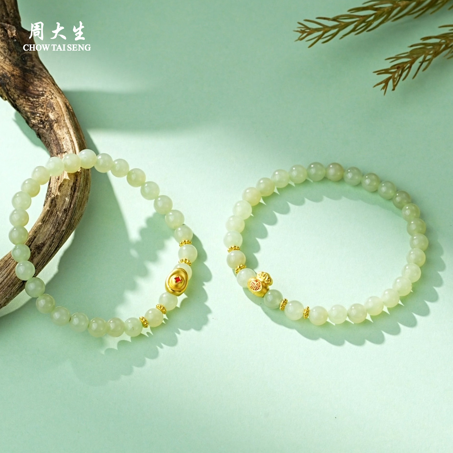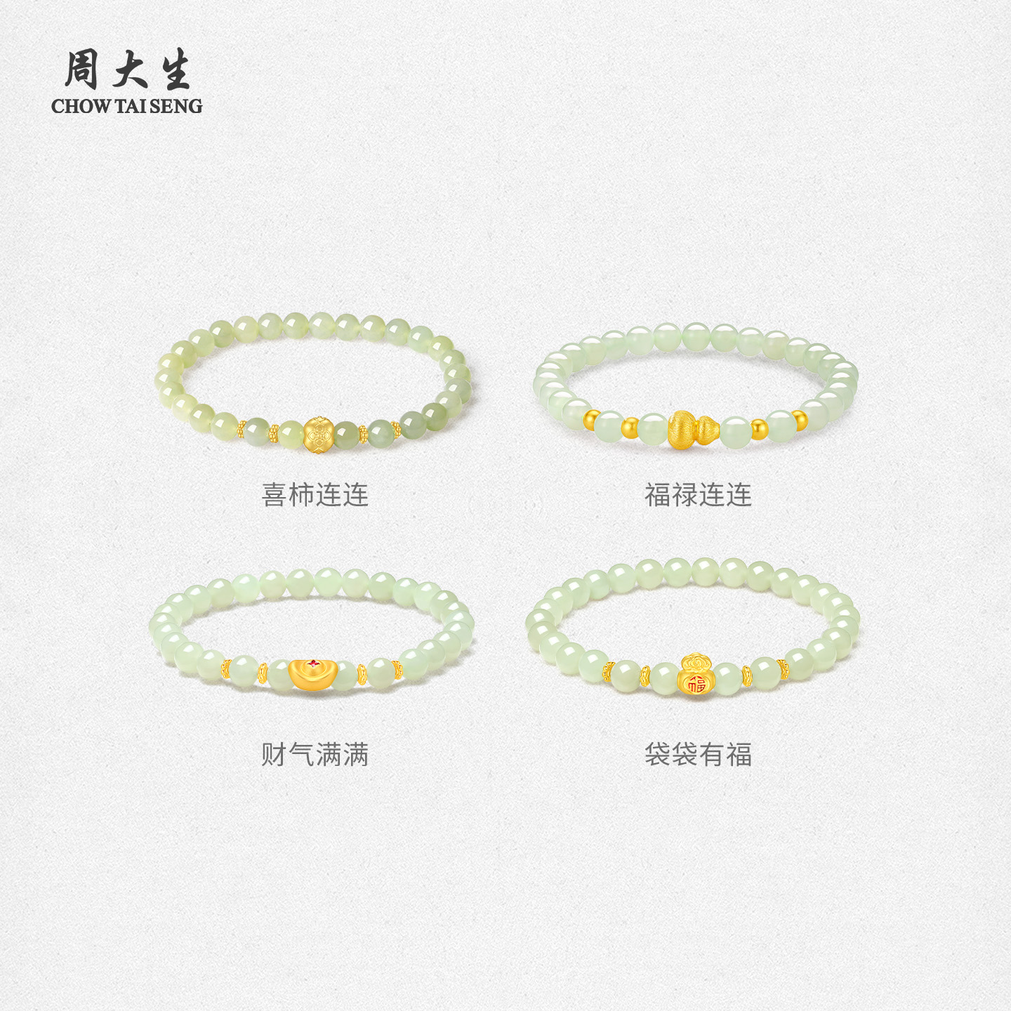 周大生黄金手链和田玉手串女足金转运珠喜柿连连生日礼物送女朋友