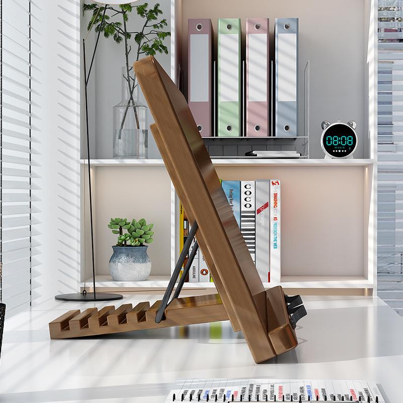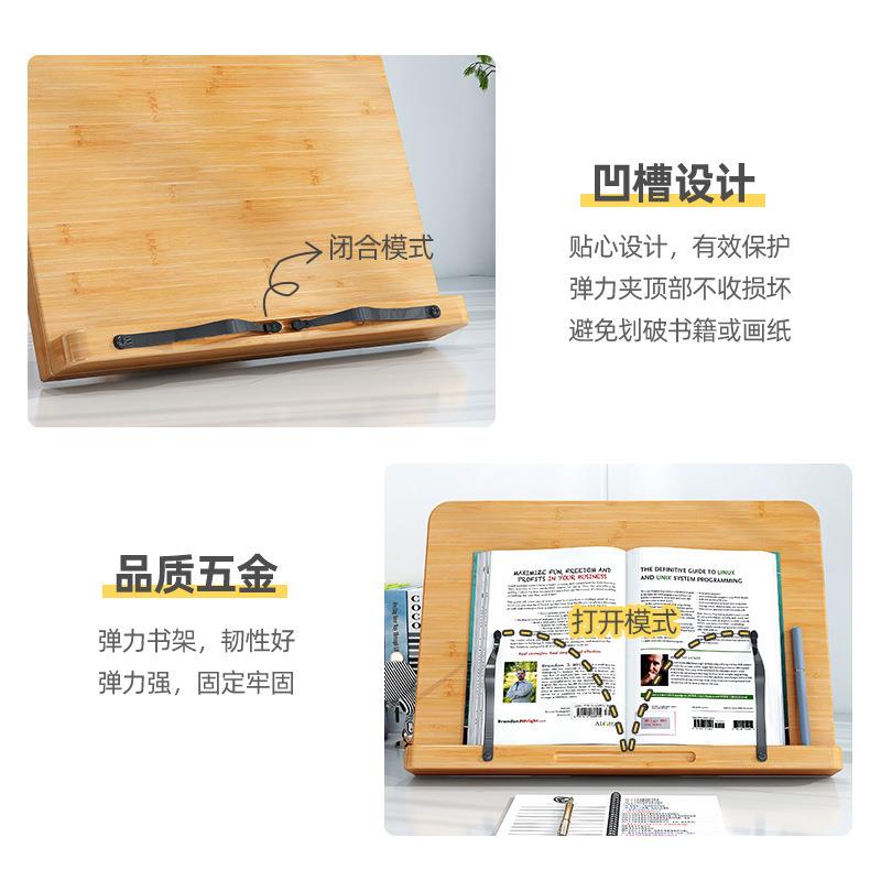 楠竹阅读架儿童阅读书架多功能桌面双层看书支架可升降木质书立架