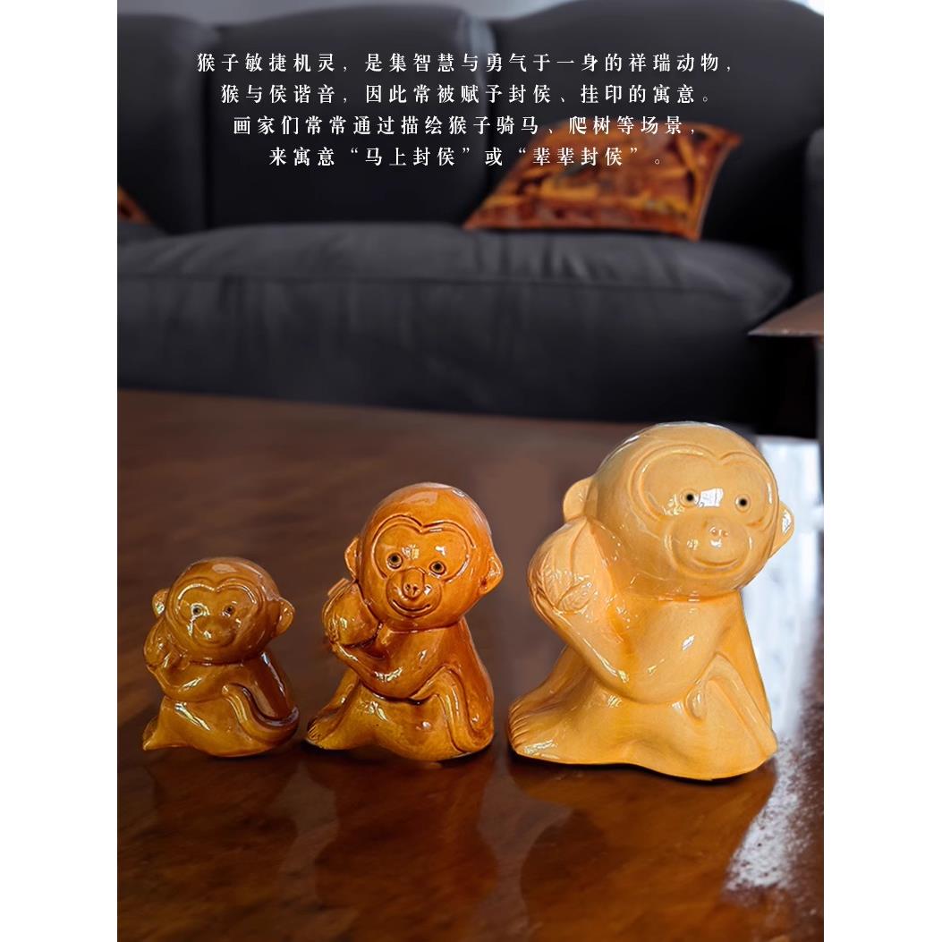 唐三彩猴子摆件陶瓷猴子十二生肖黄色猴子客厅卧室工艺品生日礼物