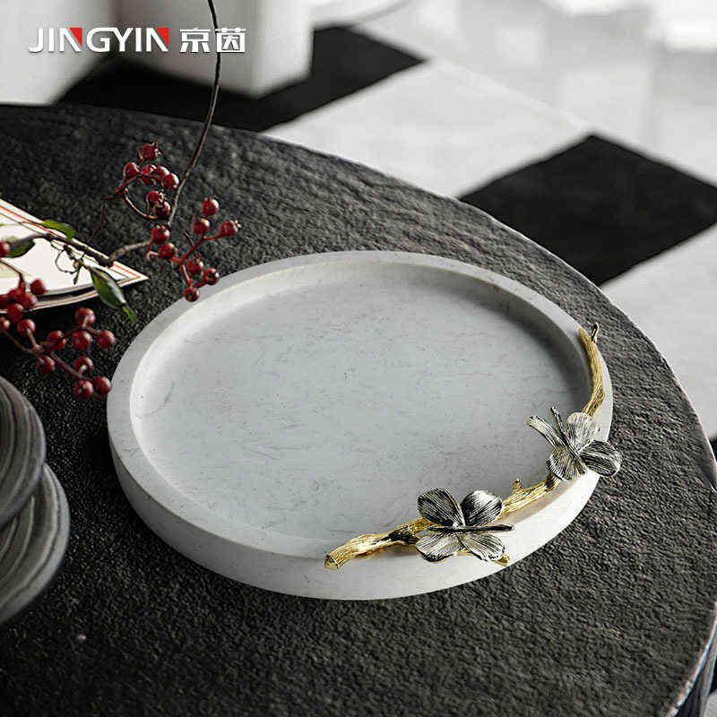 北欧简约风大理石托盘展示盘浴室洗手台轻奢收纳盘圆形置物盘子