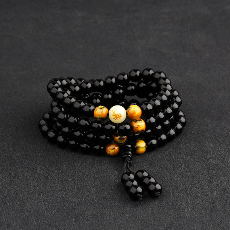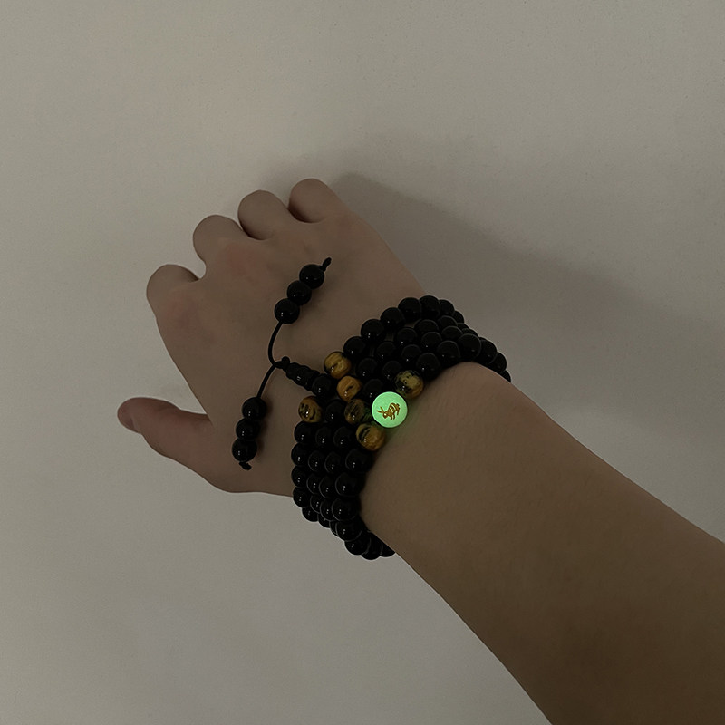 黑曜石十二生肖夜光珠手链男款潮牌百搭高级感弹力男士手串男生