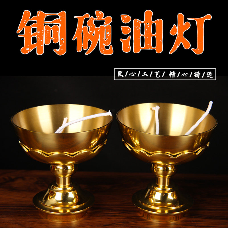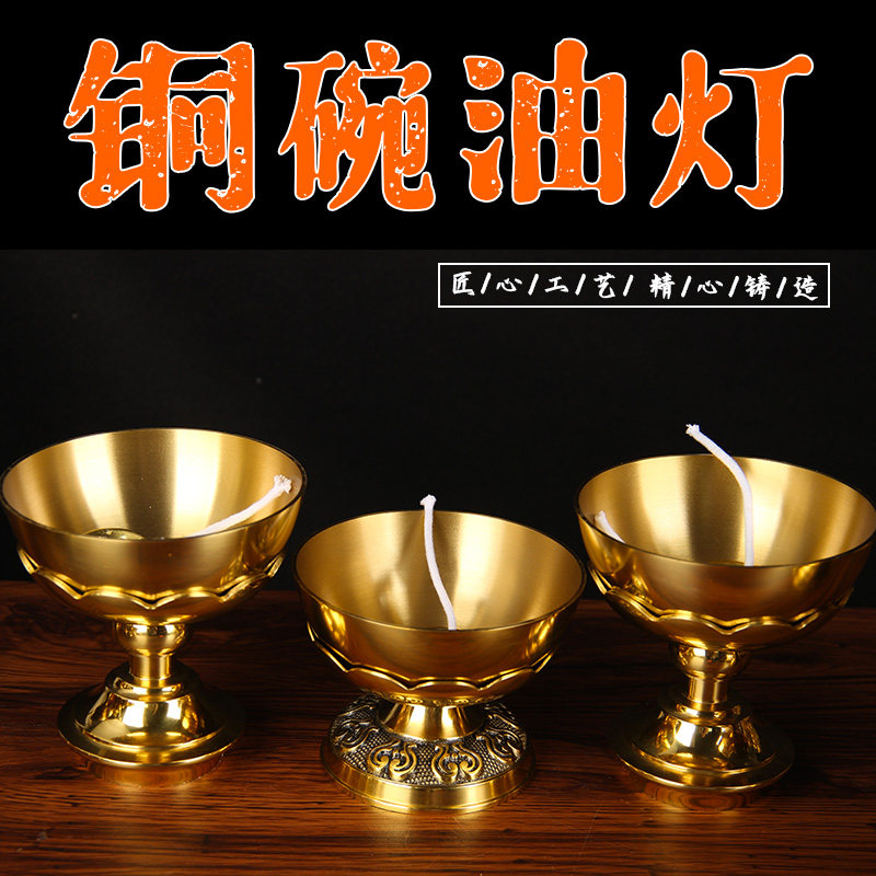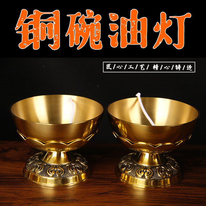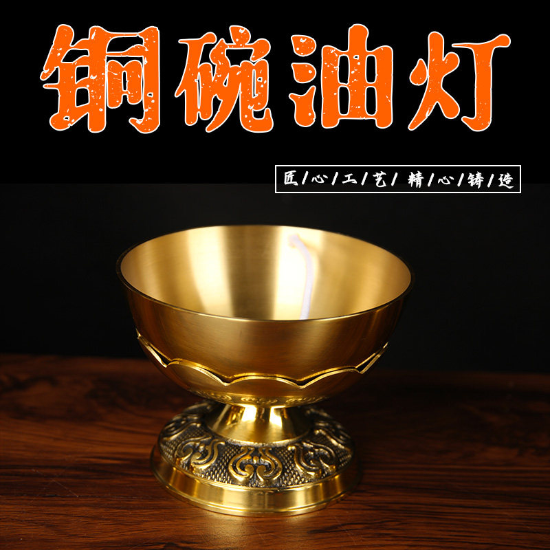 酥油灯灯盏食用香油灯黄铜供佛灯铜碗油灯家用长明灯复古佛前供灯