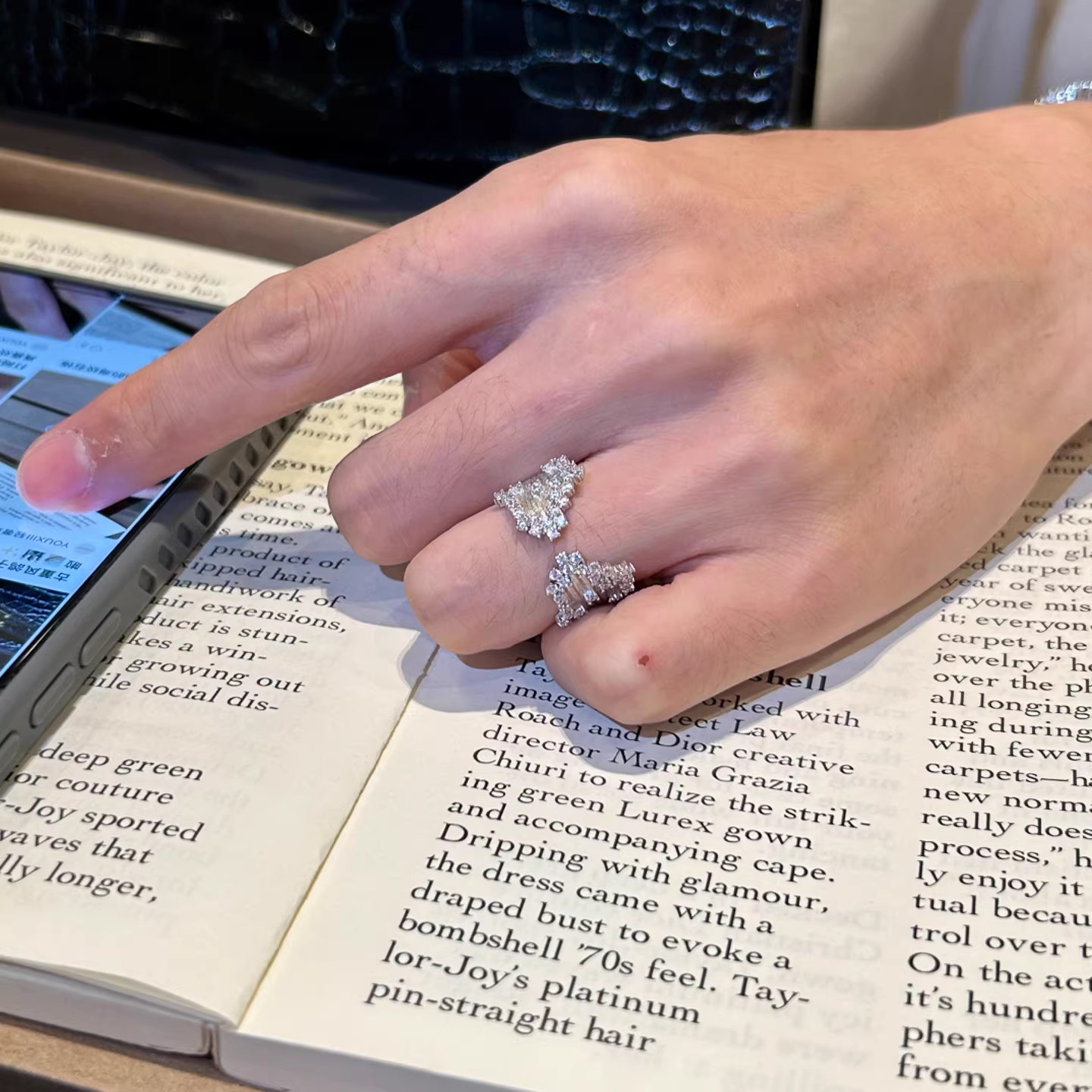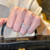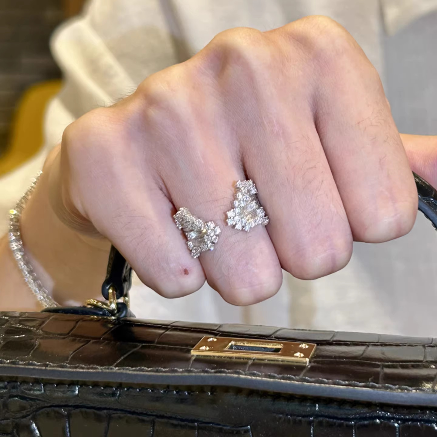 银色拉丝闪钻满天星开口可调节戒指女小众设计个性食指戒重工轻奢