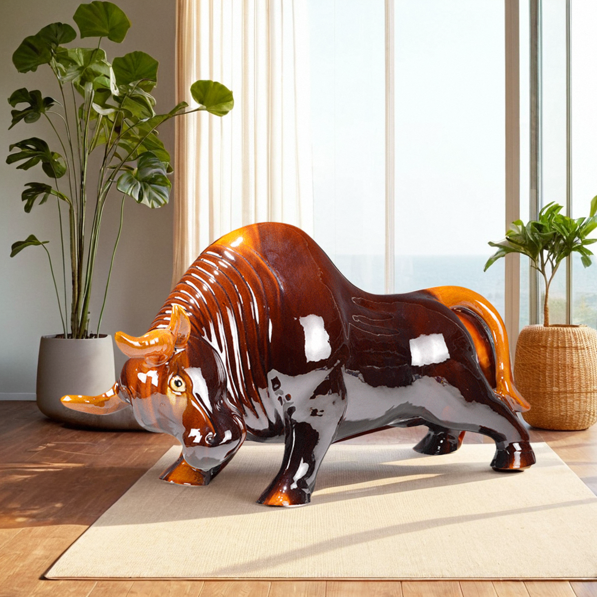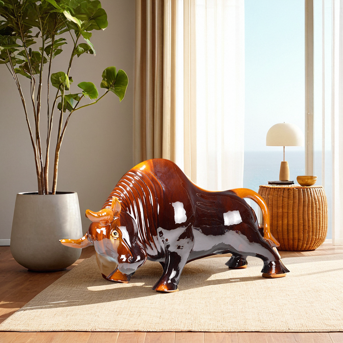 唐三彩陶瓷牛不褪色大摆件 中国风手工艺品客厅办公室装饰艺术品