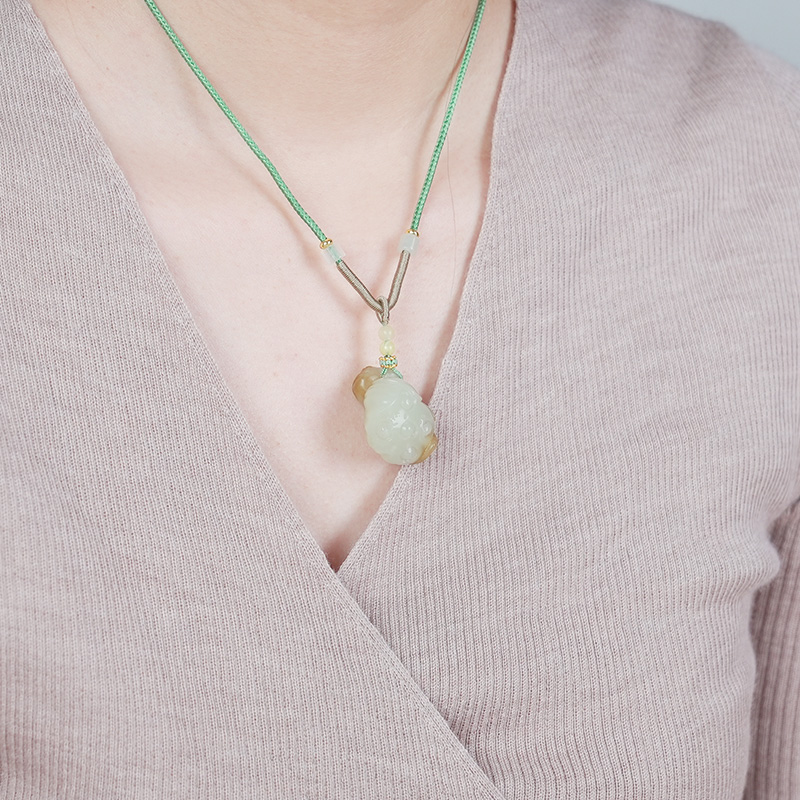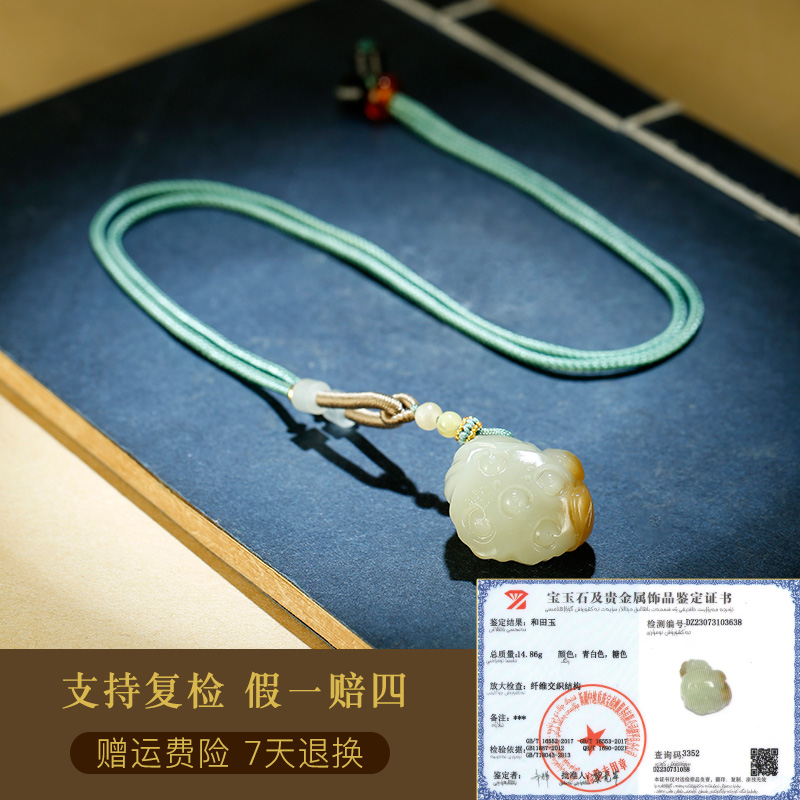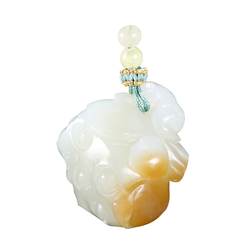 玉友和田玉且末糖白青蛙莲蓬吊坠男女款玉坠顶呱呱玉石玉挂件孤品