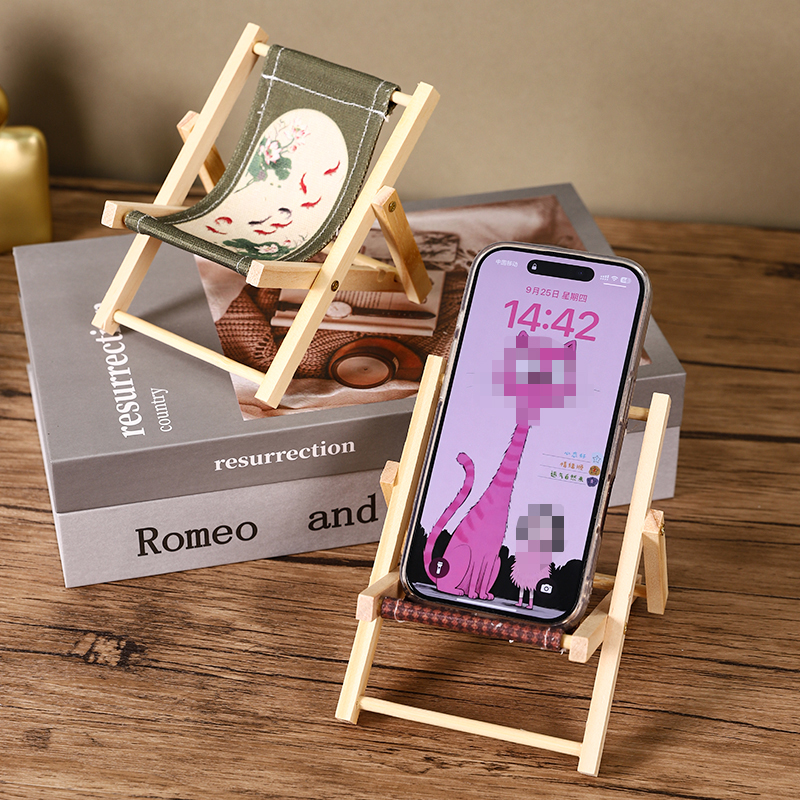 创意沙滩椅手机支架懒人折叠迷你小椅子桌面装饰拍照道具摆件