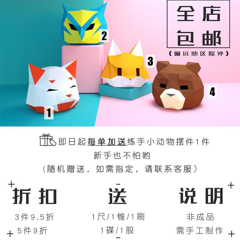 3D几何熊猫纸膜宿舍桌面摆件北欧ins风创意家居装饰品手工DIY纸模