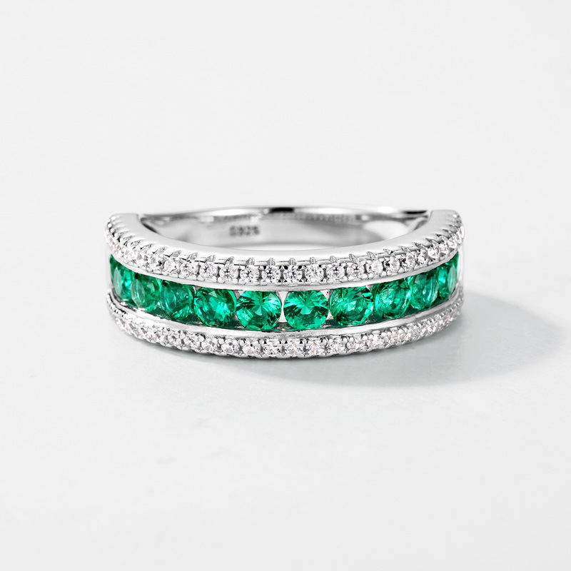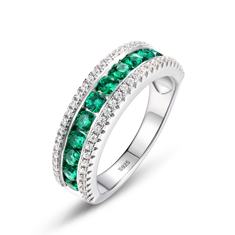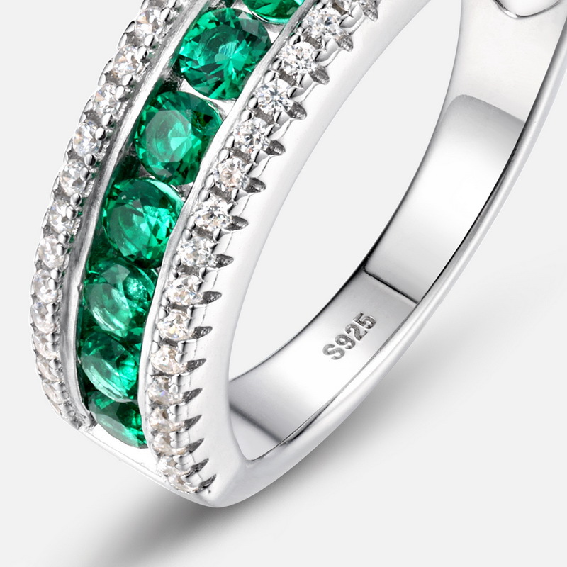 满镶排钻培育祖母绿戒指S925银镀18K金PT950铂金镶培育彩宝食指戒