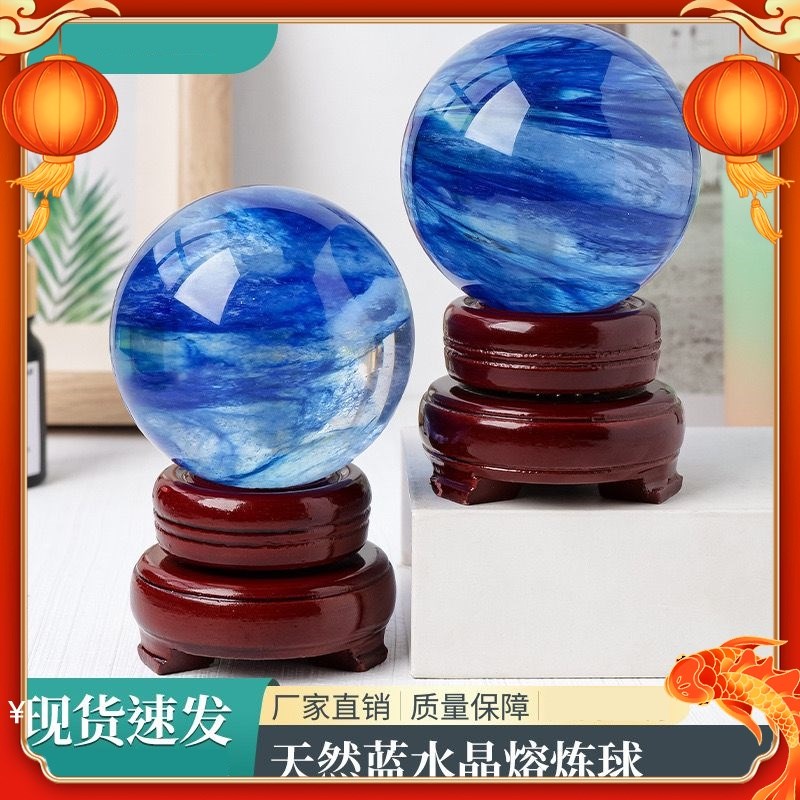 天然蓝色水晶球摆件 熔炼家居客厅办公室装饰品开业乔迁礼品