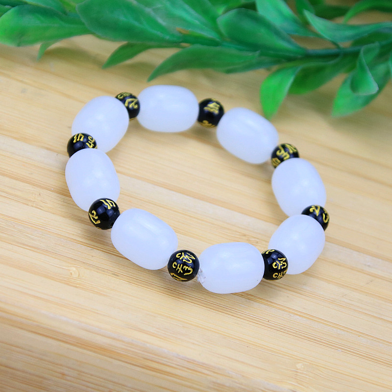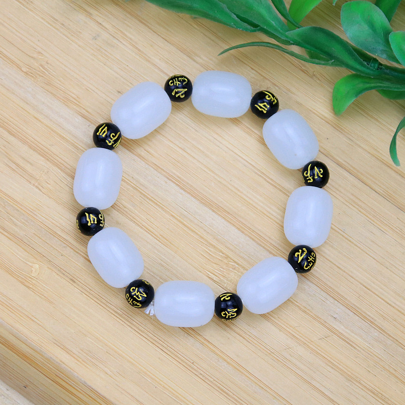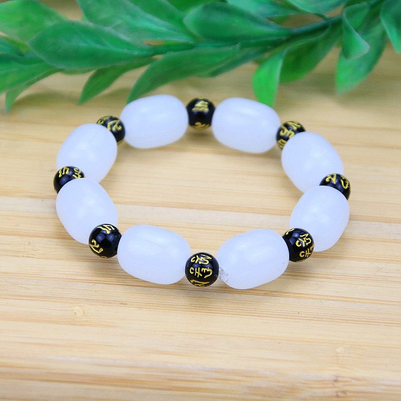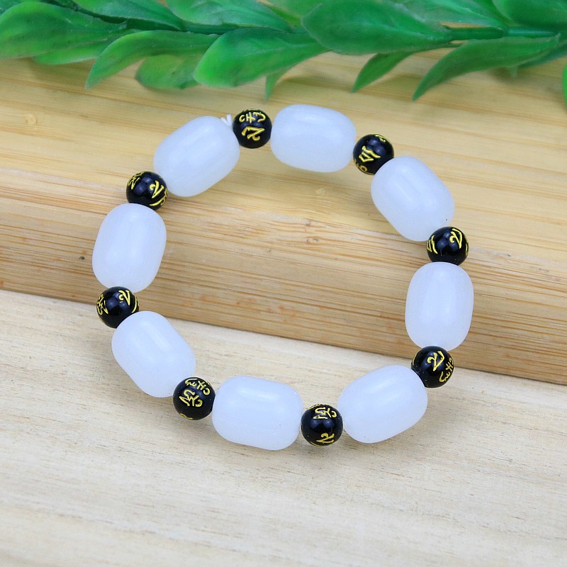 新款热卖男女本命年手链饰品手工串珠六字真言仿白玉桶珠玻璃手串