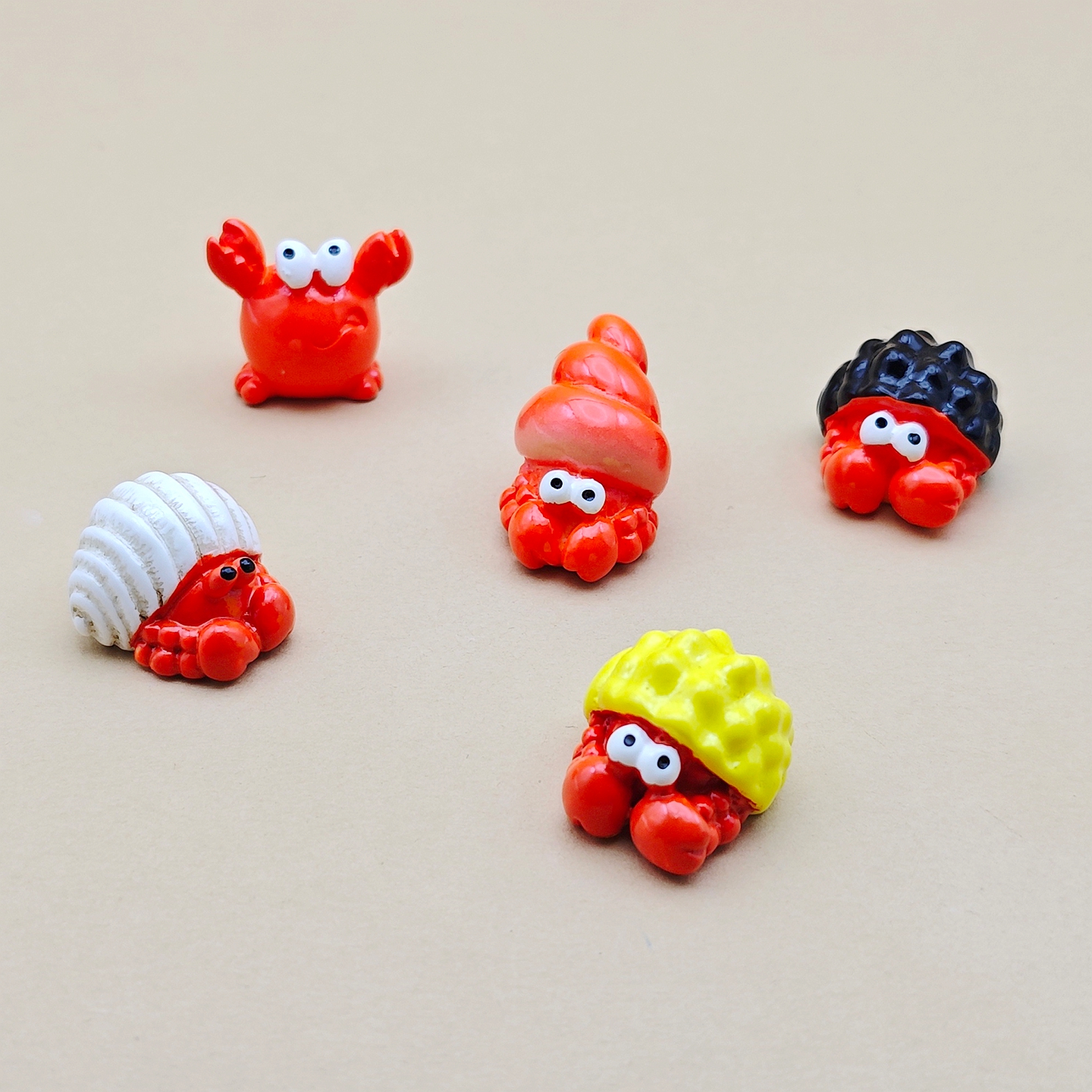 卡通可爱仿真海洋动物寄居蟹螃蟹公仔小号树脂桌面装饰微景观摆件