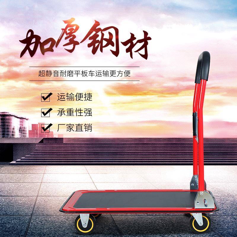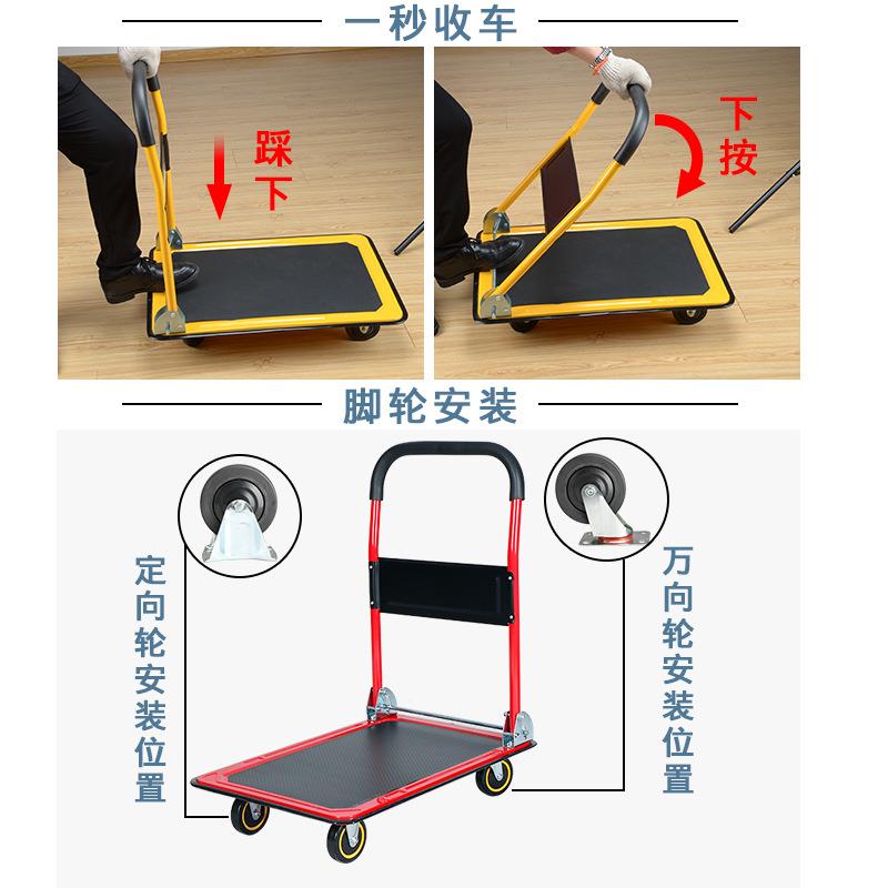 折叠平板车推货车静音手推车手拉车四轮小拖车工具车拉货车搬运车